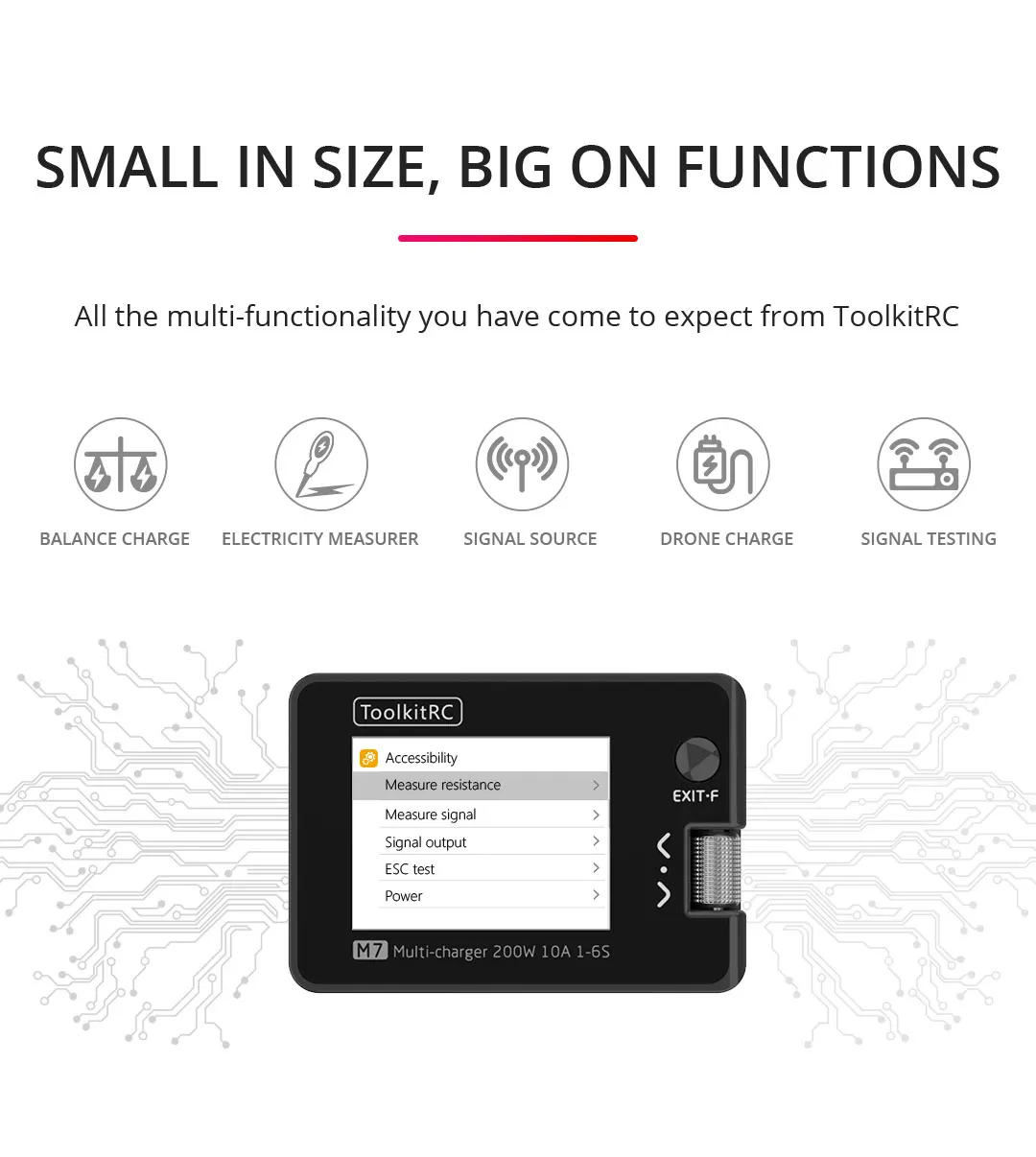 Балансирующее зарядное устройство ToolkitRC M7, 200 Вт, 10 А постоянного тока, зарядное устройство Dis для 1-6S литий-полимерных батарей с сервоприводом напряжения, проверка хода, ESC приемник, тестер сигнала