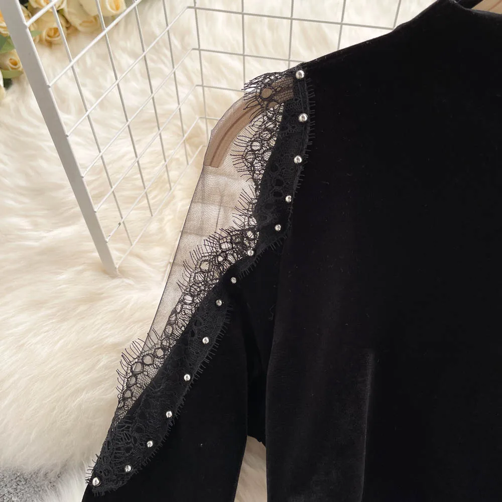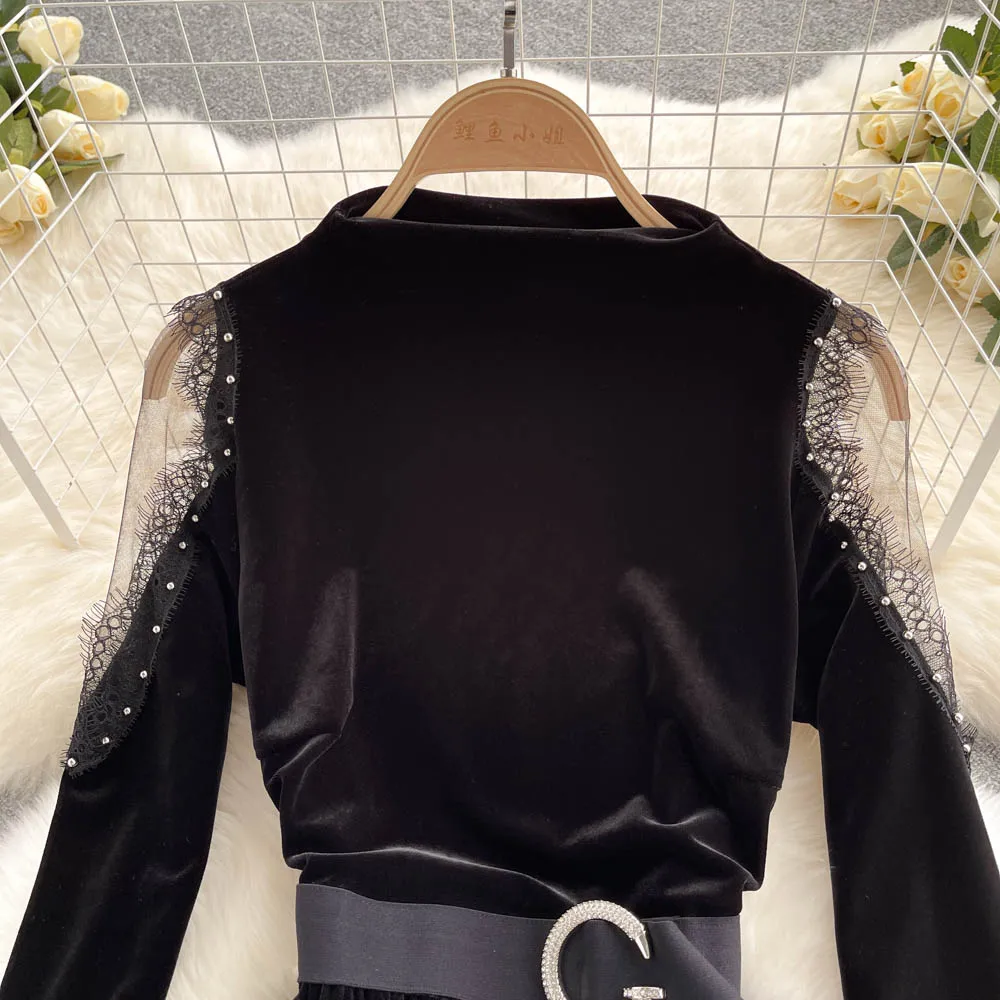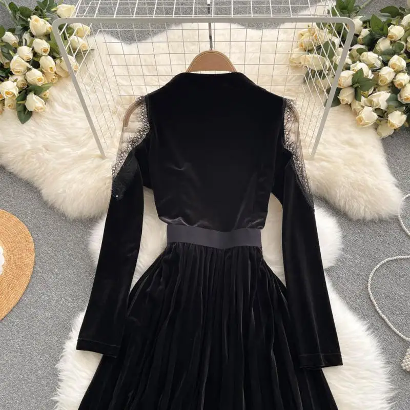 Женское бархатное платье с поясом на резинке, элегантное Плиссированное вечернее платье в стиле богини, черное удобное платье для весны и осени