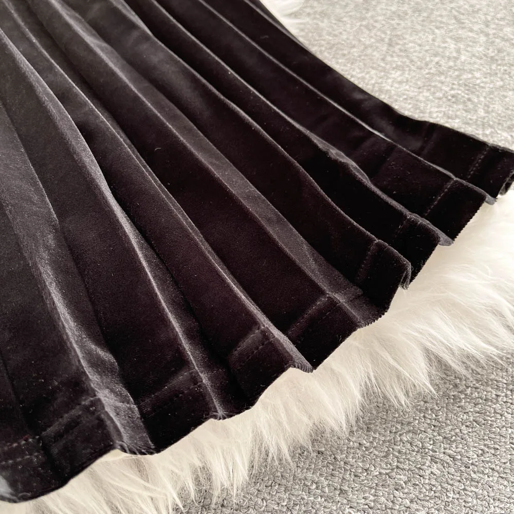 Осенне-зимнее вельветовое платье, женское однотонное плиссированное...