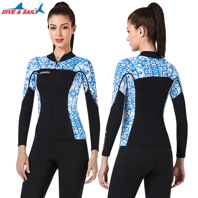 Женский гидрокостюм с длинным рукавом, Неопреновая куртка 3 мм для серфинга, подводного плавания, Сноркелинга, костюм для серфинга, рубашка или леггинсы для дайвинга