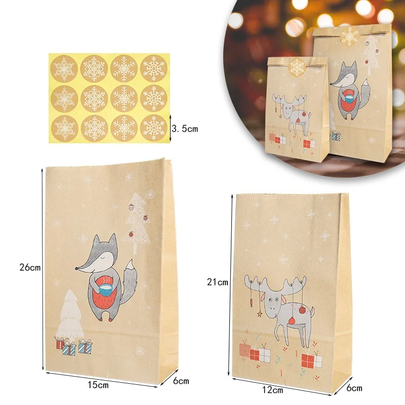12 комплектов iCraft рождественские подарочные пакеты из крафт-бумаги вечерние подарочные упаковочные наборы Рождественский Лисий Рождественский северный олень Олень Конфеты мешочек держатель с наклейками