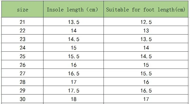 Дорогие друзья:Поскольку все размеры детской обуви отличаются, при заказе детской обуви вы должны соответствовать нашим размерам и внутренней длине.Согласно длине стельки. (длина стельки = длина стопы + 1 см)Американский размер не является стандартным, просто удобно для вас сделать заказ.Удобная длина стопы составляет около 1 см.И из-за длительного времени доставки авиа-отправление Почты Китая и ребенок быстро вырастет, пожалуйста, выберите обувь большего размера для вашего ребенка.Пожалуйста, выберите правильный размер.Вся обувь будет отправлена с пузырчатыми сумками, без коробок!