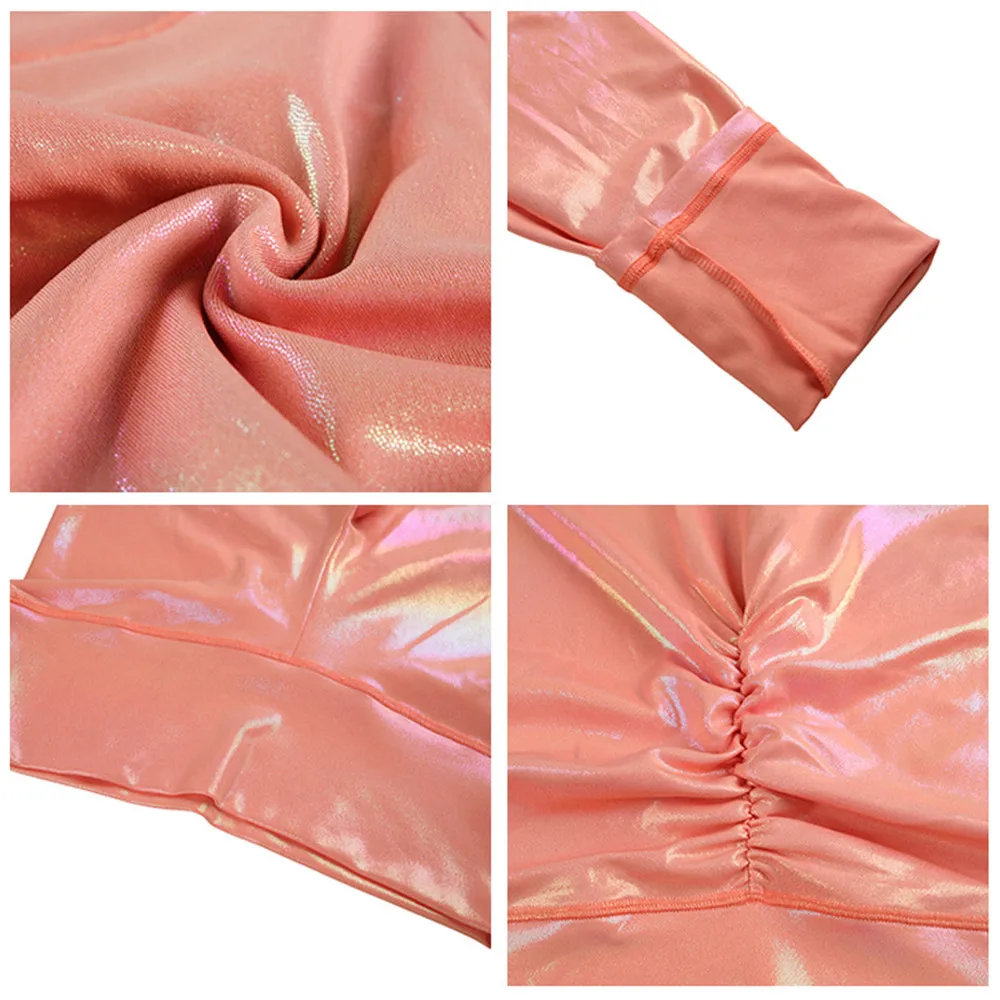 Перламутровые Леггинсы для йоги, Женские глянцевые брюки с высокой ...