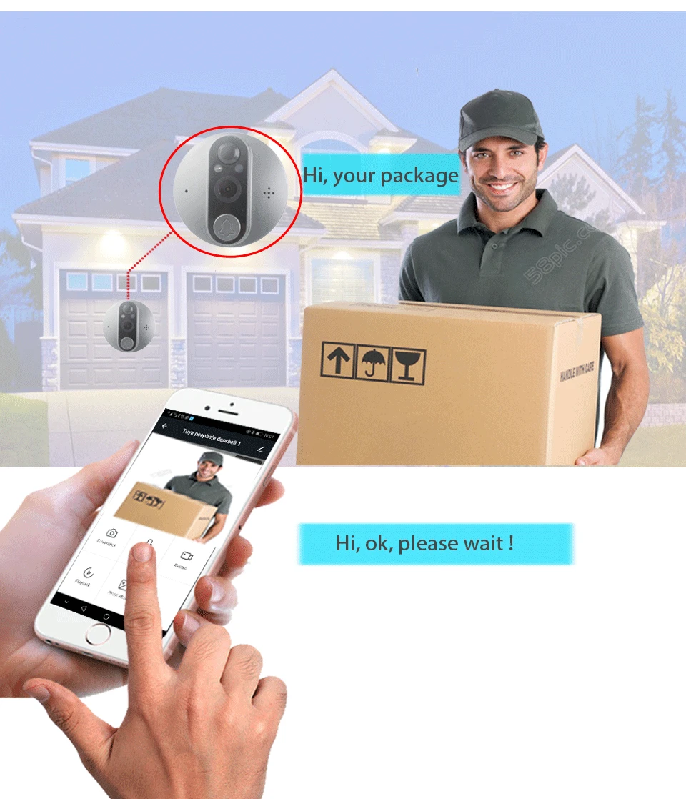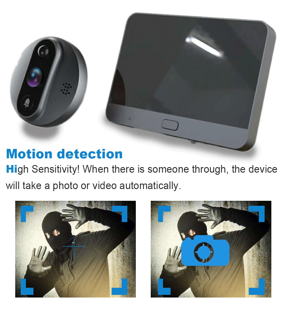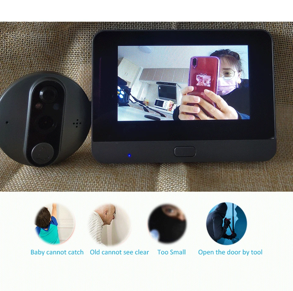 Посетитель app-уведомление + 2 способ обсуждения + обнаружение движения app-уведомление (авто фото/видео) + дверной звонок + большой экран (даже дети могут легко увидеть, который находится на открытом воздухе)
