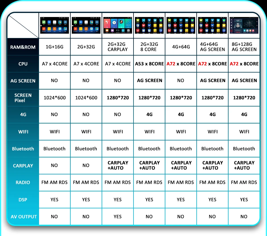 Экран 1280*720P IPSЭто Радио имеет два вида экрана-1024*600P HD экран и 1280*720P супер HD экран. Экран 1280*720 ярче и ярче обычного hd-экрана. Вы можете выбрать тип по вашему желанию.