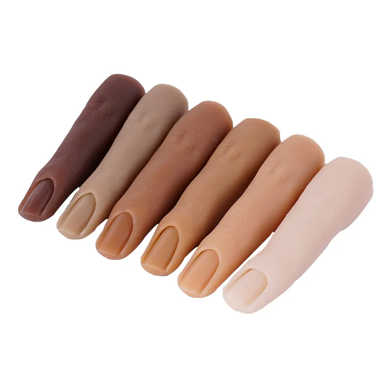 Поддельный палец ручной работы изготовлен из мягкого силикона, нетоксичный, Безопасный в использовании. Наша модель может быть замочена в ацетоне и используется в светодиодный светильник для ногтей.