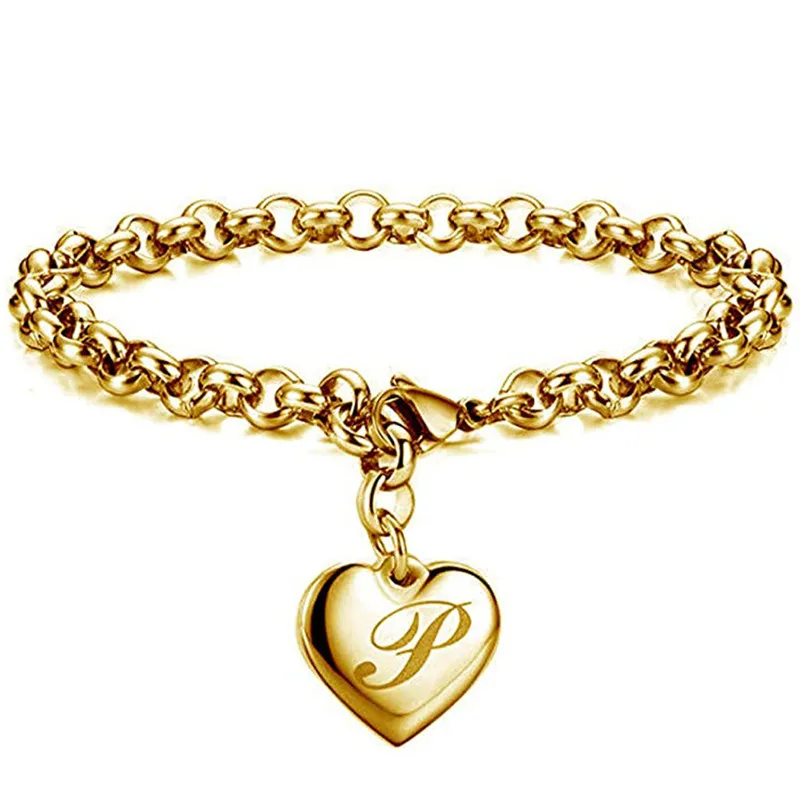 Подвески LETAPI Initial, браслеты золотого цвета, браслет из нержавеющей стали в форме сердца с 26 буквами алфавита для женщин и девочек, подарки для детей