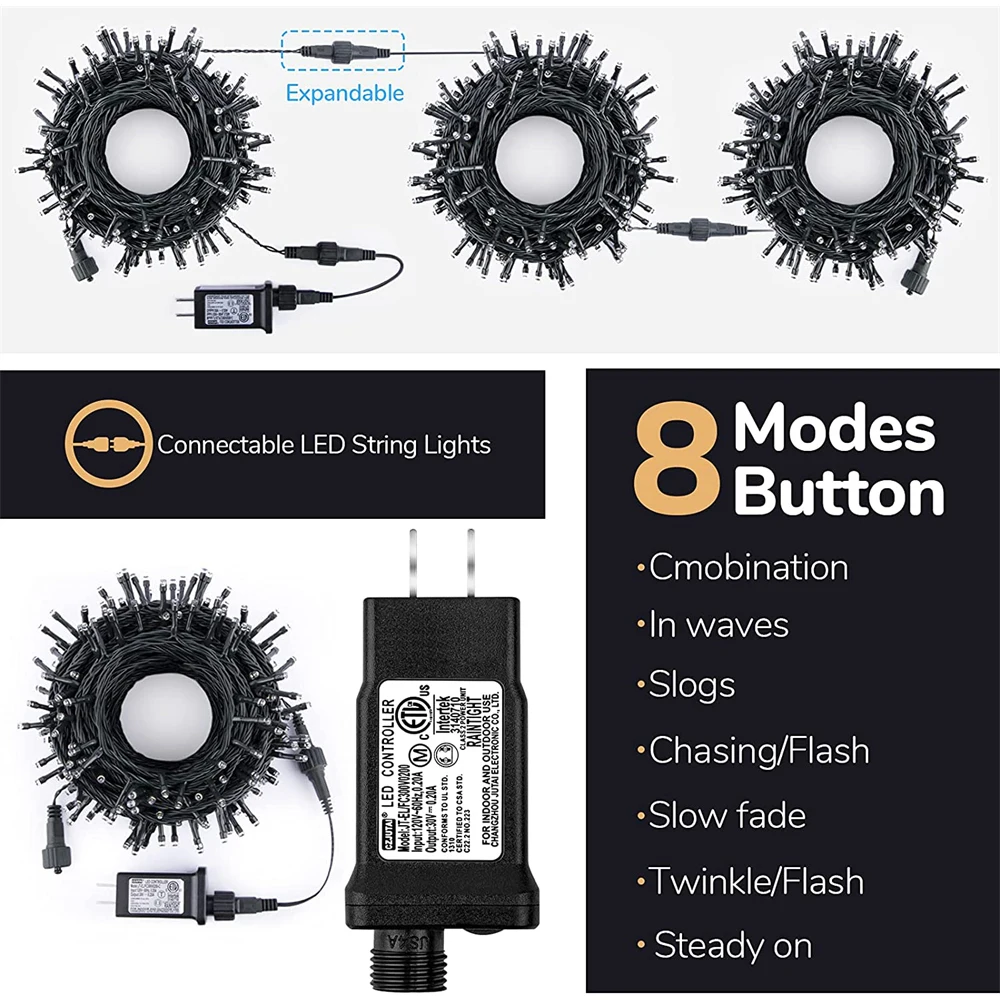 Рождественская гирлянда, 8 режимов, 30 м, 200 светодиодов, уличная ...