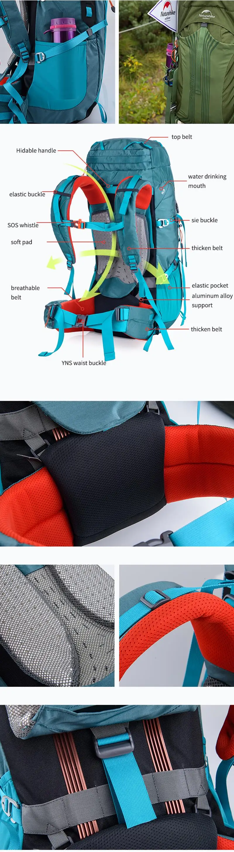 Туристический рюкзак Naturehike, вместительный, с алюминиевой рамой...