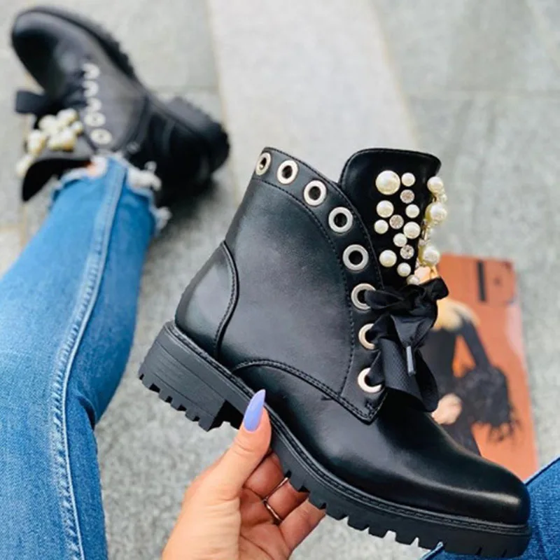 Женские мотоциклетные ботинки на нескользящей подошве, на шнуровке