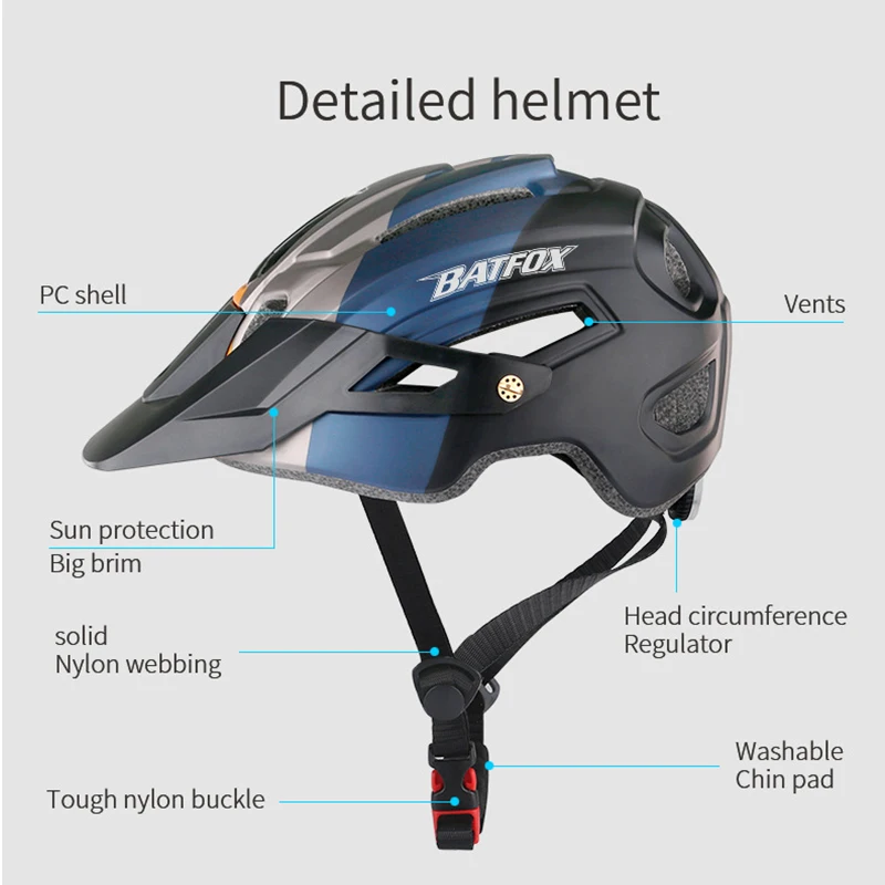 Велосипедный шлем BATFOX с интегрированным формованием, регулируемый предупреждающий фонарь, ночная подсветка, защита от солнца, съемные поля
