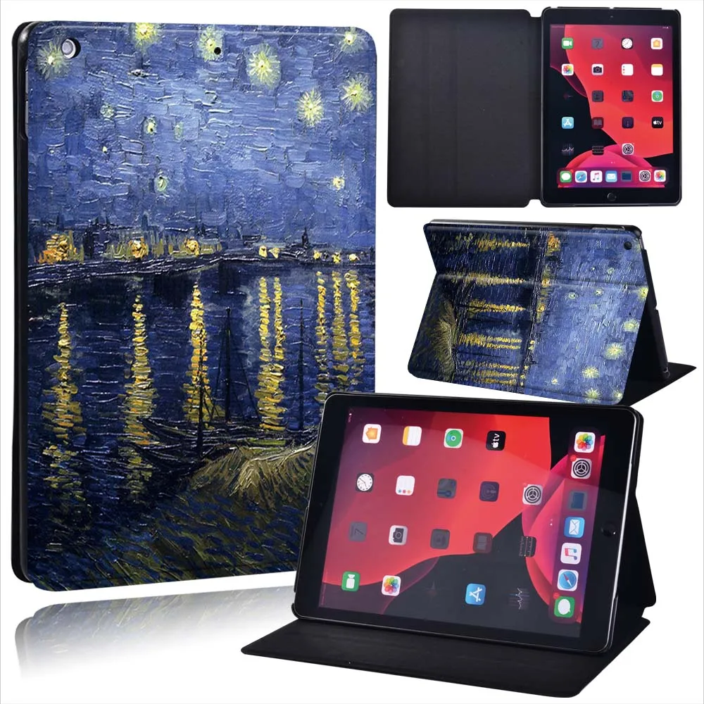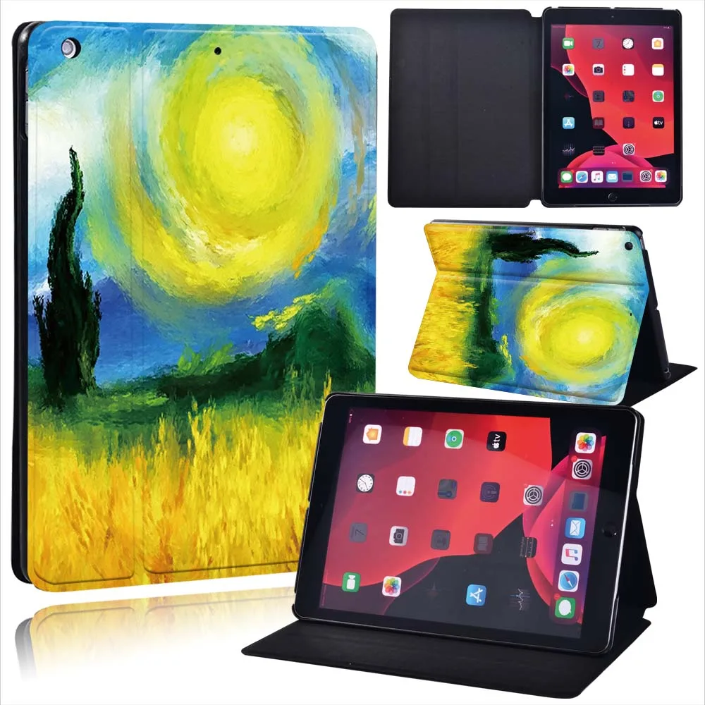 Чехол для планшета Apple IPad 2021 9-го поколения, 10,2 дюйма, картина маслом, искусственная кожа, подставка, чехол для Ipad 9-го поколения