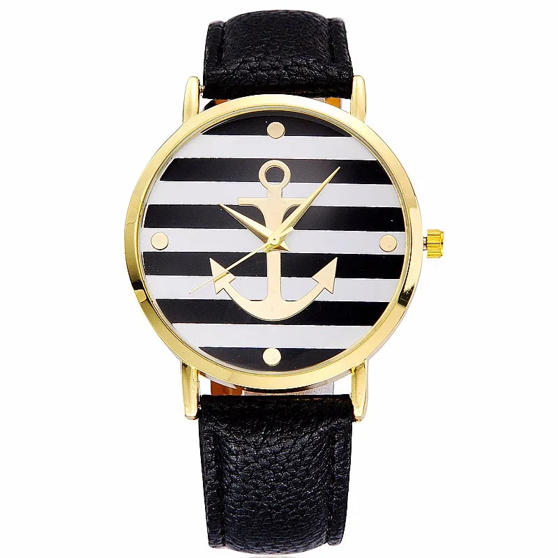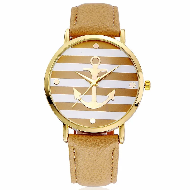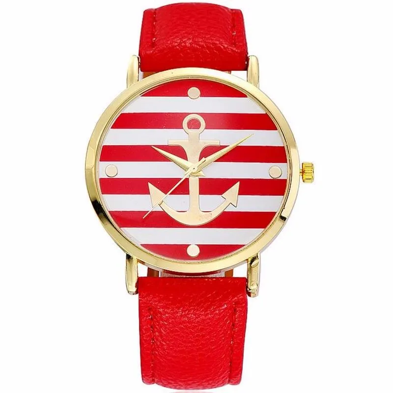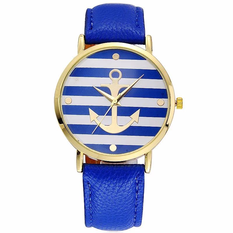 Кожаные полосатые женские часы с якорем, 5 цветов, кварцевые наручные часы для влюбленных, унисекс, женские и мужские повседневные кварцевые часы, Relogio masculino