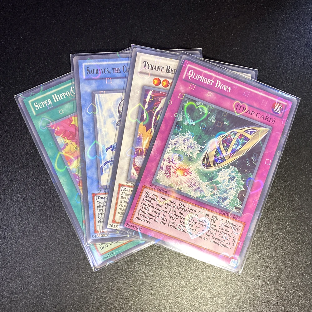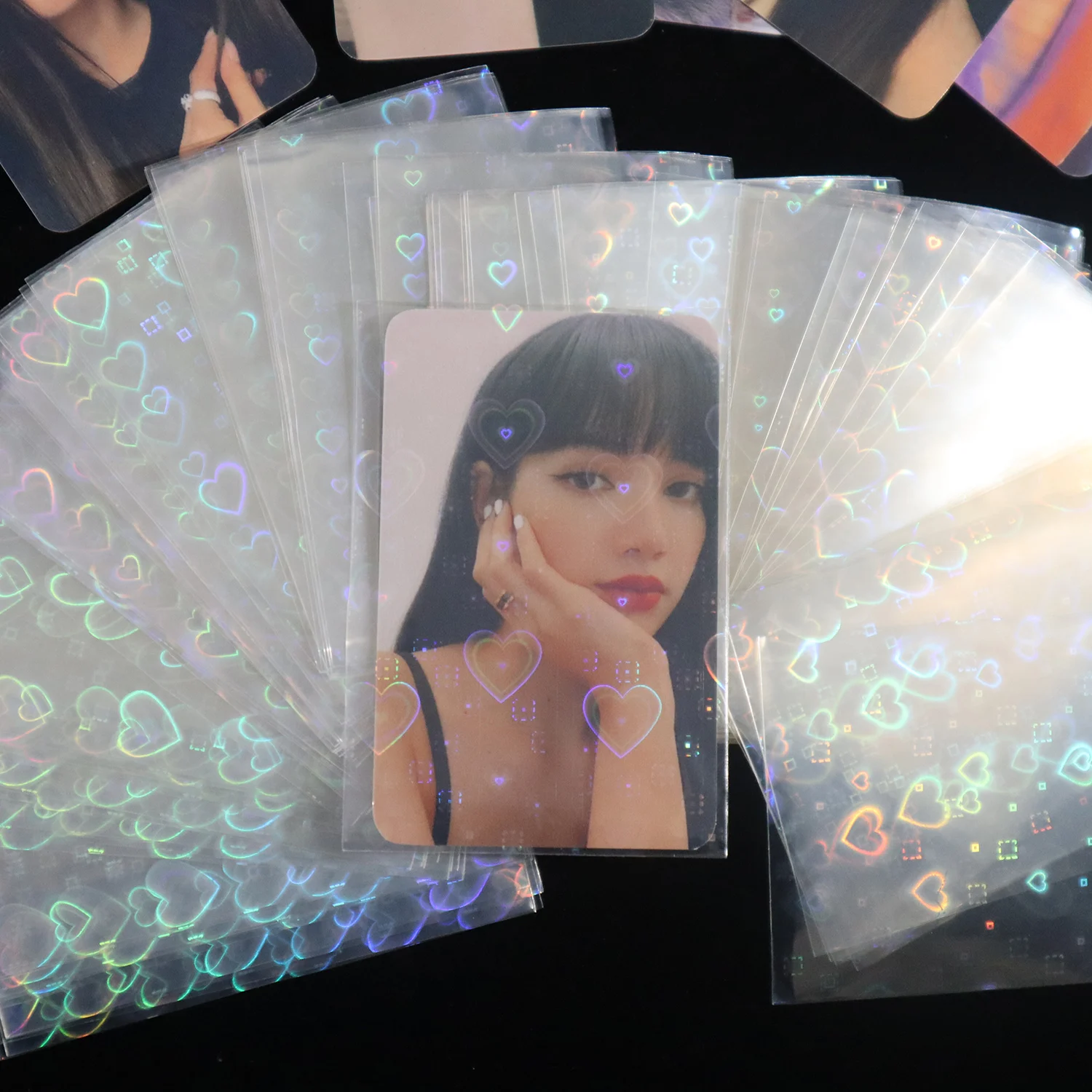 100 шт.лот мигающие рукава для лазерной карты в форме сердца для YGO Ultra суперпротектор для карт голографическая пленка защитная пленка 61x88 мм