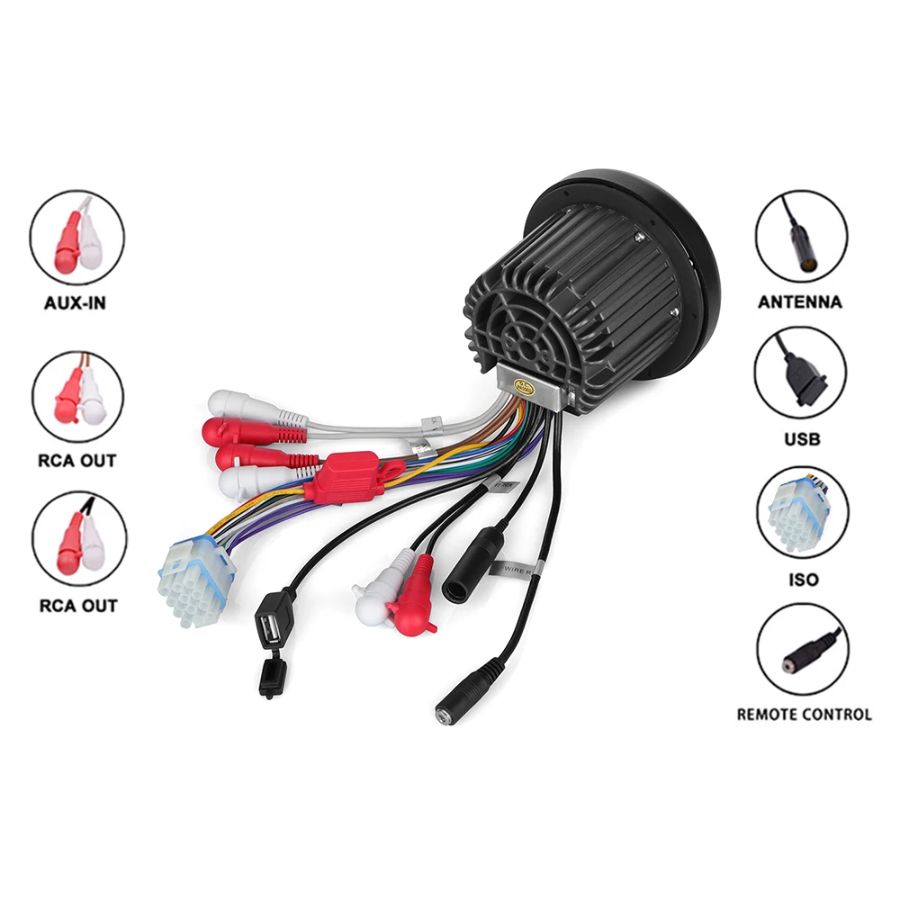 Особенности:Помещается в стандартный манометр-отверстие (тахометр) отверстиеВстроенный 72*4 Вт пиковый мощный усилитель (28 * 4RMS)Встроенный эквалайзер с предустановленными кривыми эквалайзера (поп классические элементы)IP66 Водонепроницаемая Сертификация (Протестировано, чтобы выдержать элементы)Usb-вход для воспроизведения аудиофайлов на usb-накопителе или любом другом usb-устройстве. Usb-вход поддерживает максимум 16 ГбВход RCA AuxAM/FM радио встроенный с 18 FM и 6AM пресетов + США и Европейской настройкиВстроенный Bluetooth для передачи аудио с любого устройства с поддержкой BluetoothДва набора выходов RCA (передний и переключаемый задний) позволяют подключать внешние усилителиБольшие простые в использовании кнопкиТребуется Вырез: 3,72 ″ (диаметр) × 2,76 ″ (глубина)USB 500 мА и 5 В, поддерживает зарядку MP3/WMAХарактеристики усилителя:TDA7851L квад-мост усилитель мощности4 × 72 Вт пик @ 2 Ом4 × 48 Вт пик @ 4 Ом4 × 28 Вт RMS @ 4 ОмРазмеры:Диаметр крепления резьбы 3,72 дюйма4,45 дюйма Диаметр верхней пластины2,76 дюйма глубина монтажа (не включая верхняя пластина)3,74 дюйма Глубина включает верхнюю пластину