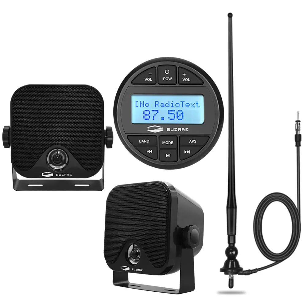 Водонепроницаемое морское аудио стерео радио с Bluetooth, MP3-плеер + 4-дюймовые водонепроницаемые динамики для лодки, квадроцикла, спа, гольф-мобиля + FM AM антенна