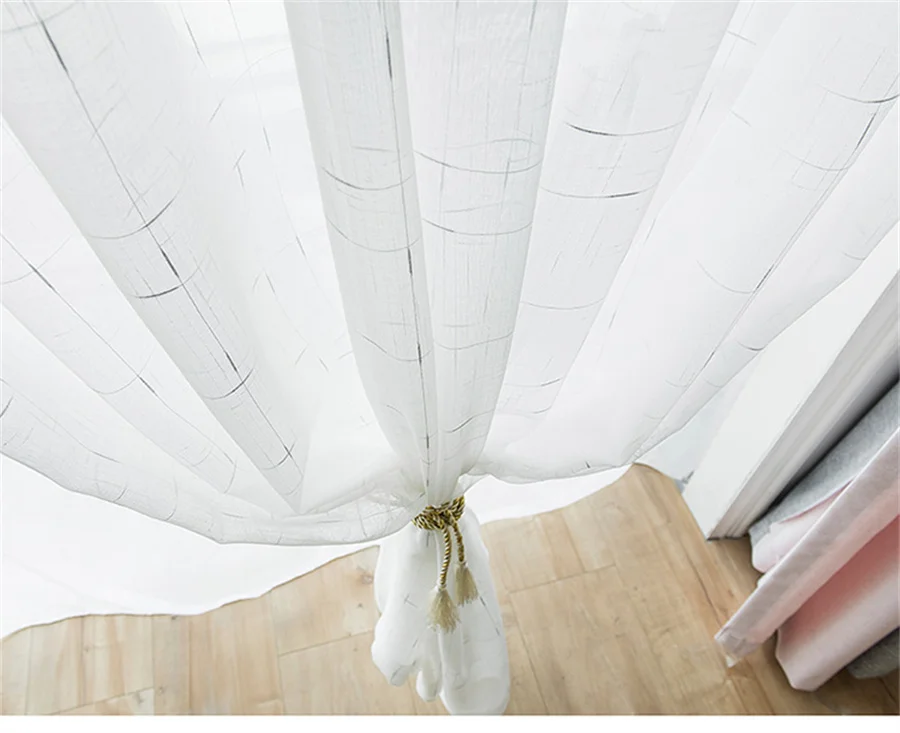 Тюль XUNTUO, белая прозрачная занавеска для гостиной, спальни, льняная конопляная пряжа, окрашенная для кухни, тонкая драпировка для окон