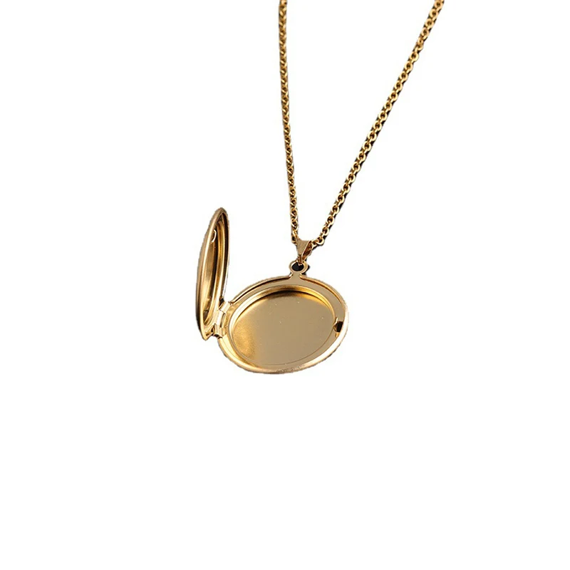 Ожерелье с подвеской из нержавеющей стали, Ювелирное Украшение круглой формы с кулоном и фоторамкой, цвет золото, серебро, Подарочная бижутерия для пар