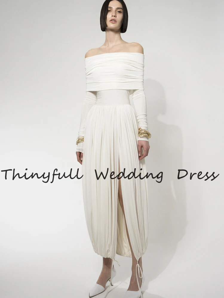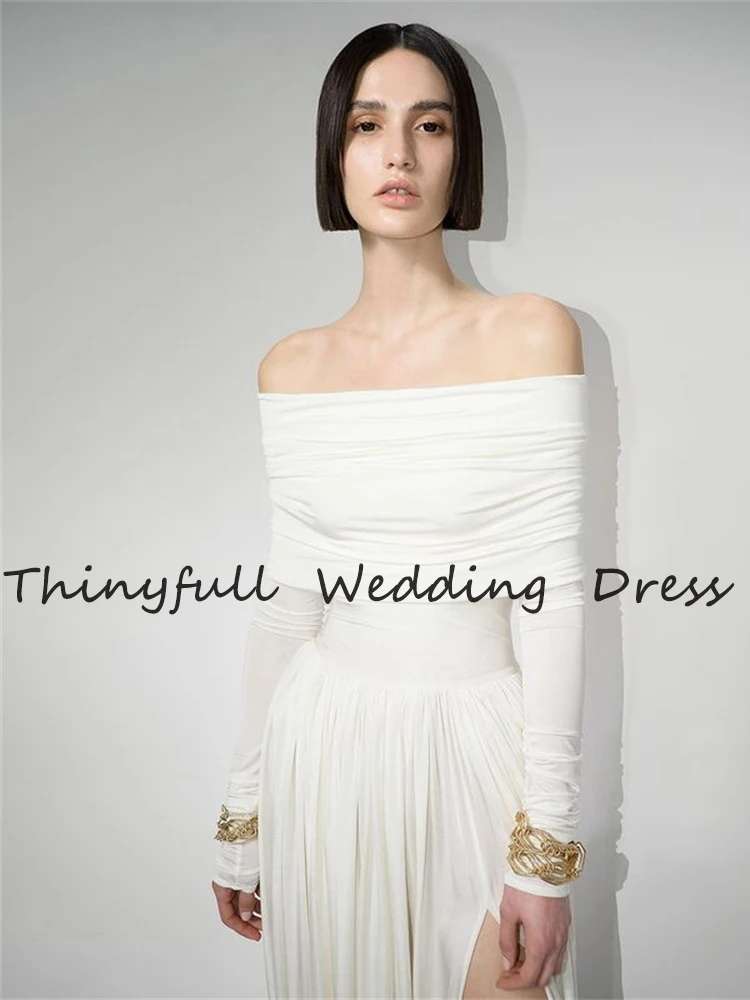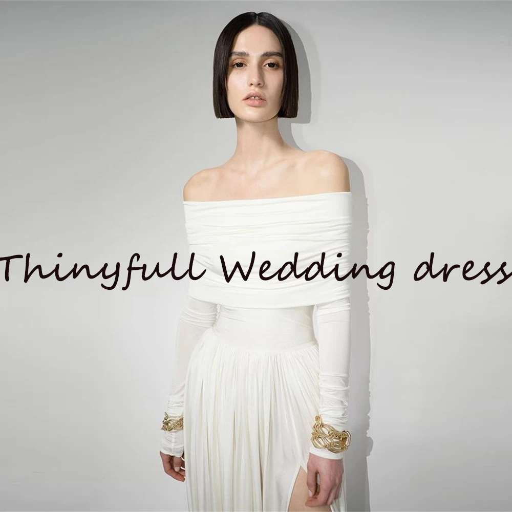 Современные Свадебные платья с длинным рукавом 2021, пляжные платья с Боковым Разрезом для невесты, Формальные Свадебные платья для выпусквечерние вечера, платья для вечеринки