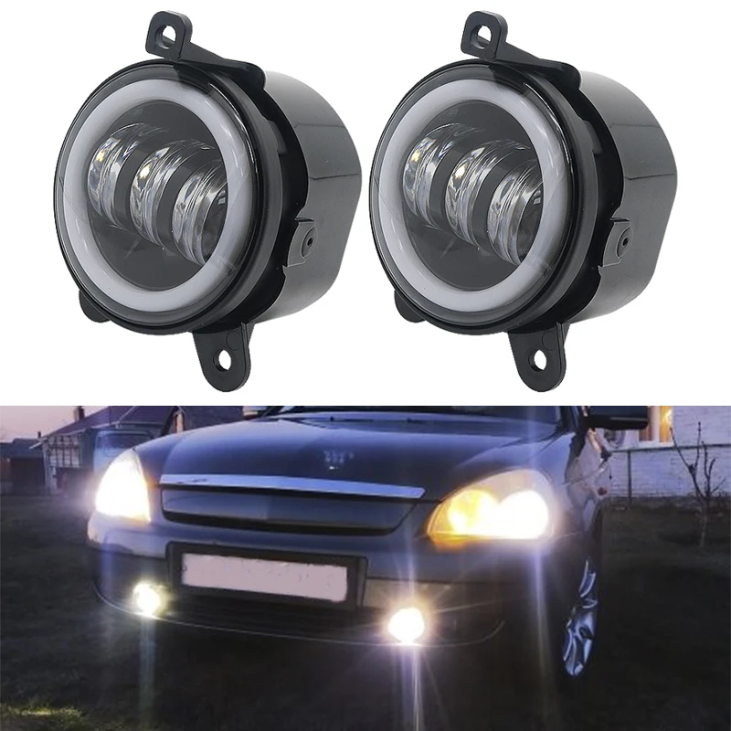 Пара 3,5 дюймовых круглых светодиодных противотуманных фасветильник, фасветильник дальнего света с белым янтарным ореолом, лада приора для газели, аналогичные противотуманные фары