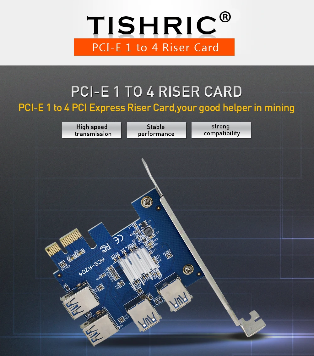 Райзер TISHRIC PCI Express, мультипликатор PCIE PCI-E, от 1 до 4 USB 3,0 концентратор X16, переходник для видеокарты, адаптер для майнинга биткоинов ETH