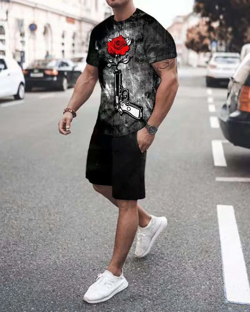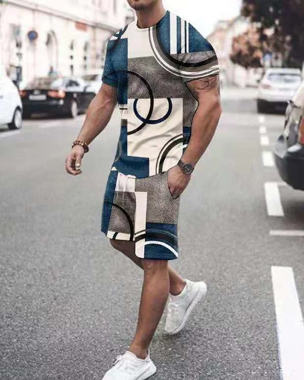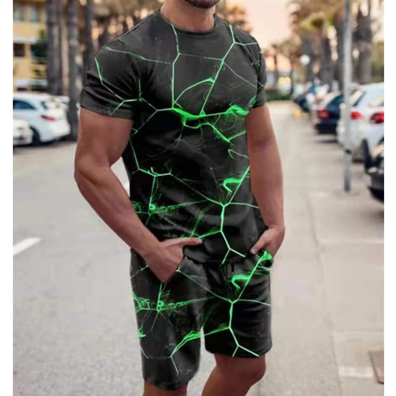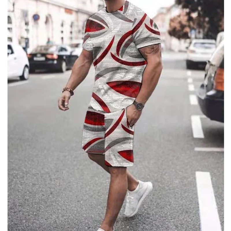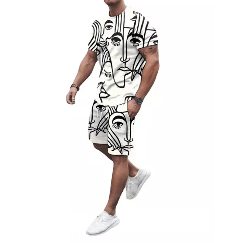 Мужской костюм-двойка, Винтажная футболка с коротким рукавом и принтом в стиле Харадзюку + шорты, повседневный уличный костюм, 2021