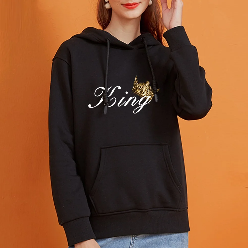 Женский свитер с капюшоном, повседневный яркий свитер с капюшоном и алмазным принтом в виде короны, Женская трендовая парная Осенняя свободная черная Дамская Толстовка
