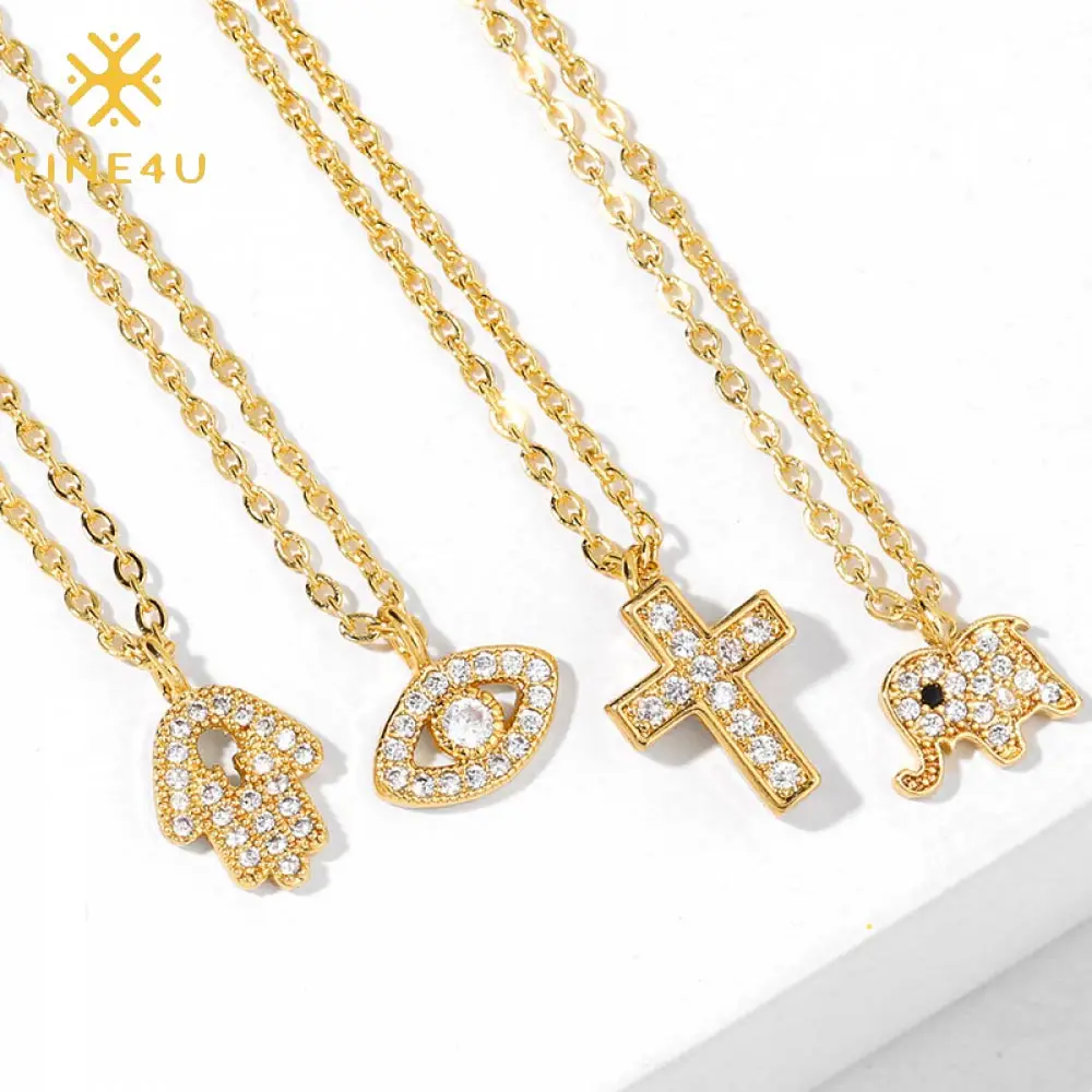 Ожерелье FINE4U N934 с глазами и крестом в виде слона для женщин и девочек, греческая защита, ювелирные изделия, амулет, подарок для девочек и мальчиков