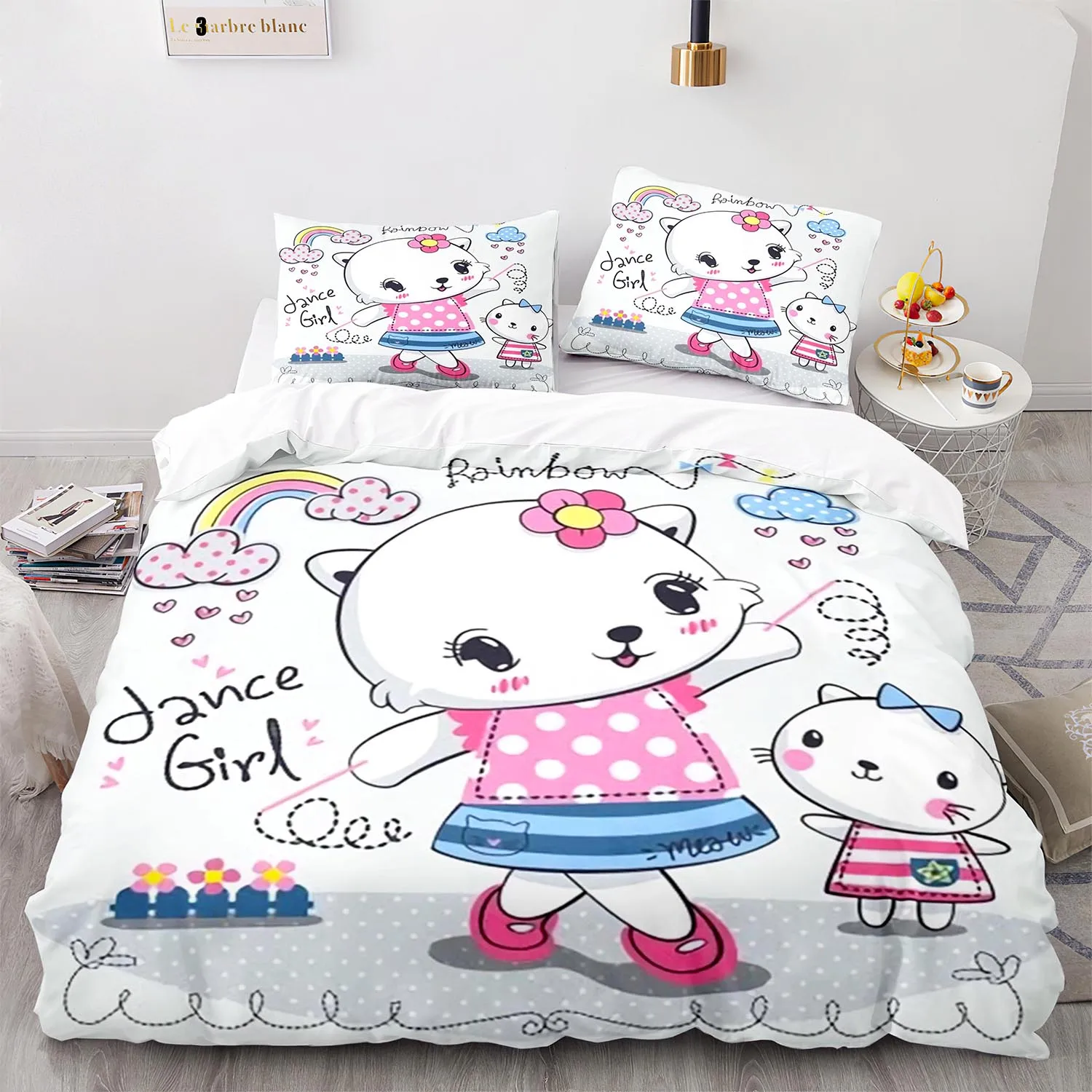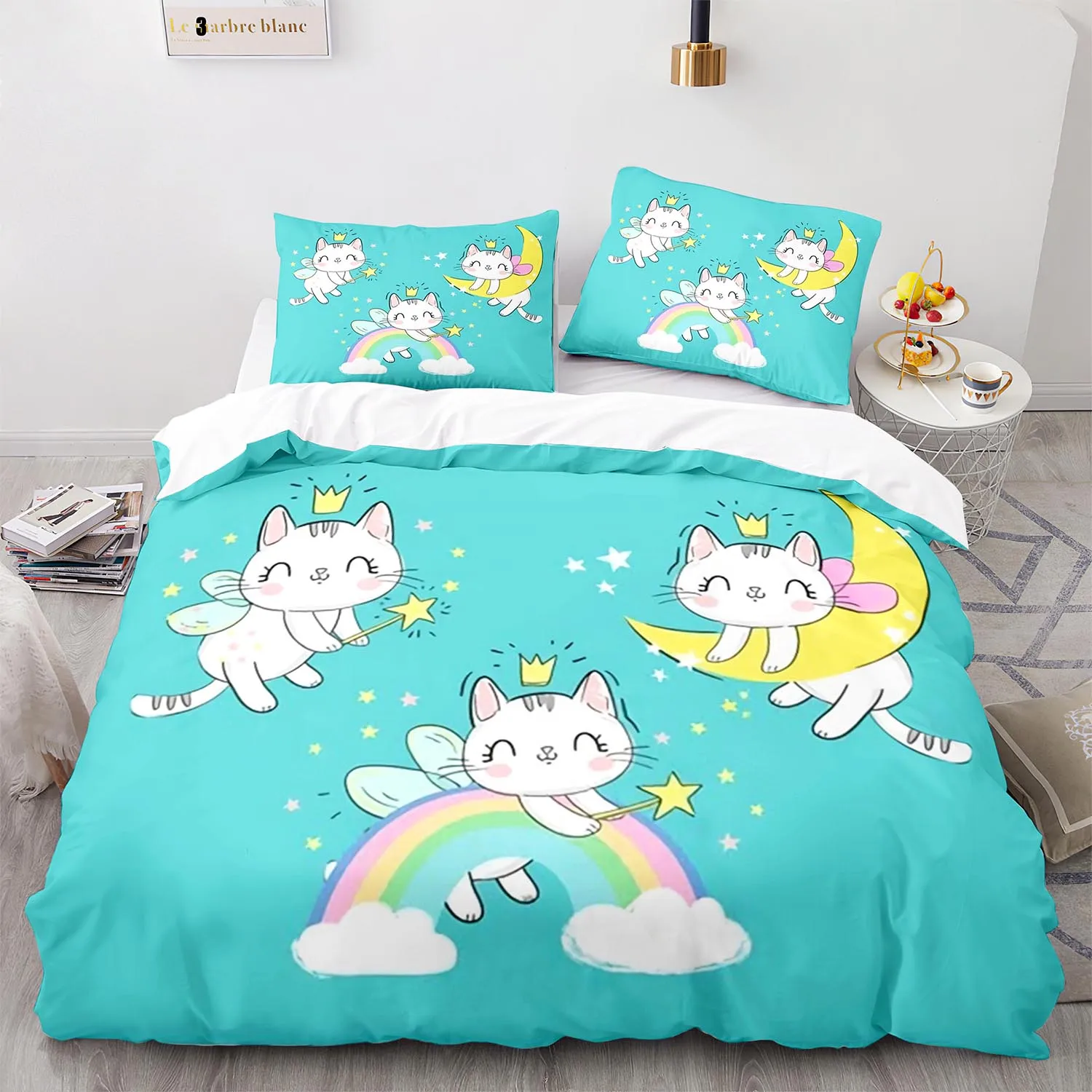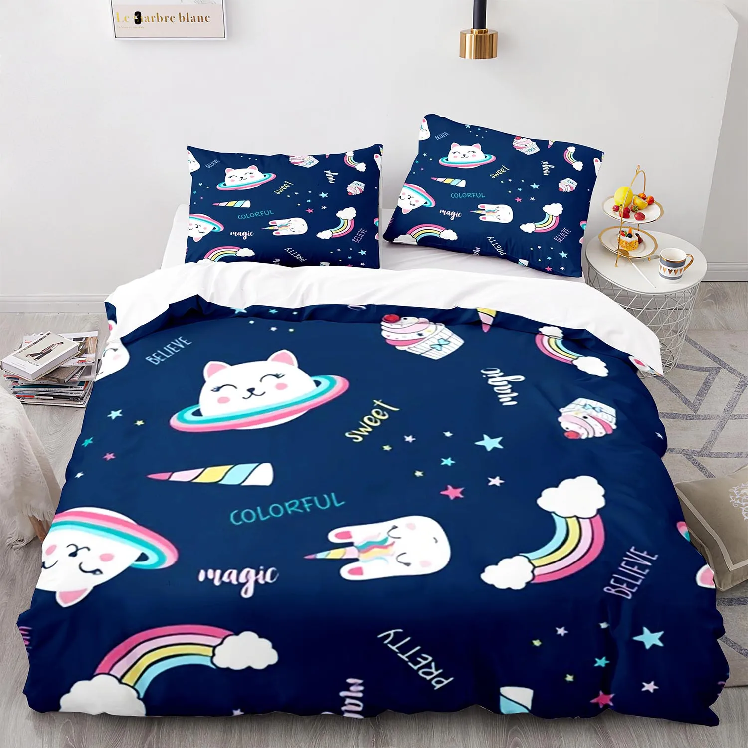 Комплект постельного белья с радужным котом, для односпальной и двуспальной кровати, Королевский Комплект постельного белья для девочек, с 3D-принтом, 015