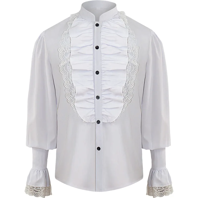 Рубашка мужская с воротником-стоечкой и оборками, белая Готическая ...