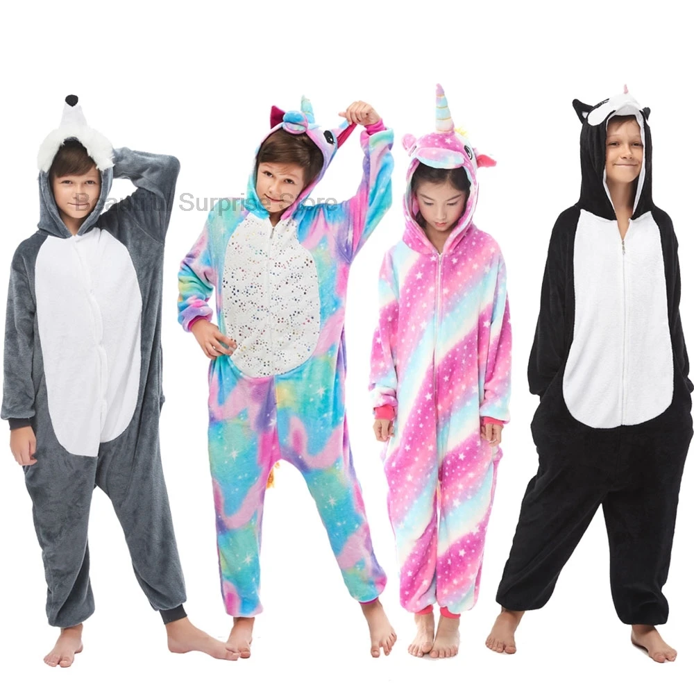 Детская Пижама-комбинезон Единорог для девочек кигуруми волк диноза...