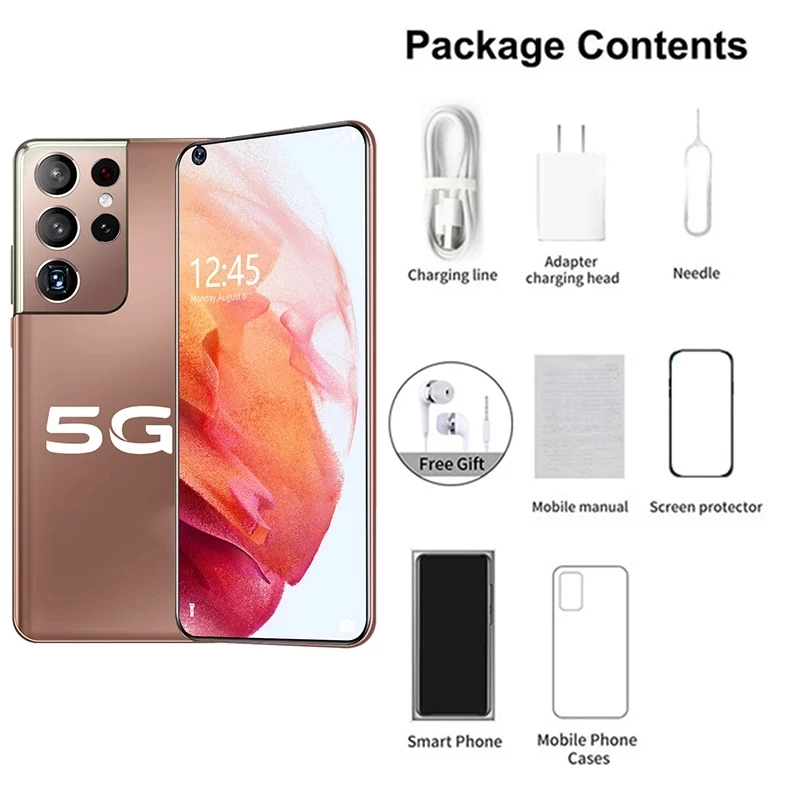 Информация о продуктеМодель: S21 UltraПроцессор: MTK6989 Deca Core, размер экрана (не позднее, чем за 10 сердечник)ОС: Android 10,0Размер экрана: 7,3 дюймов 4K капли воды экранАккумулятор: 6800 мАч литий-ионный аккумулятор высокой плотностиЯзык: Поддержка нескольких языковДисплей: 1440*3200Память: 16 Гб RAM + 512 ГБКамера: фронтальная камера 24 Мп + задняя камера 48 МПSim-карта: двойная Nano sim-картаСеть:2G: GSM 850/900/1800 / 1900 МГц3G: WCDMA 900 / 2100 МГц4G: FDD-LTE: B1 / 3/7/8/19/20Датчик:FaceID, близость, акселерометр, магнитный, гироскоп, Прочие ожерелья и подвески (светильник датчик)Особенности:Поддержка смарт пробуждения, распознавать лица, Wi-Fi + Bt + FM + GPS, микро USB интерфейс, 3,5 мм стандарт для наушников, Bluetooth, с поддержкой OTG, WAP/MMS / GPRS ,Wi-Fi, GPS, гравитация, Сенсор, будильник, календарь, калькулятор, аудио рекордер, видеомагнитофон, WAP/MMS/GPR, просмотр изображений, электронная книга, мировые часы...Посылка:1 x смартфон,1 x адаптер зарядного устройства,1 x зарядный кабель,1 х Наушники,1 x Руководство пользователя,1 x чехол для телефона,Защитная пленка-1 шт.