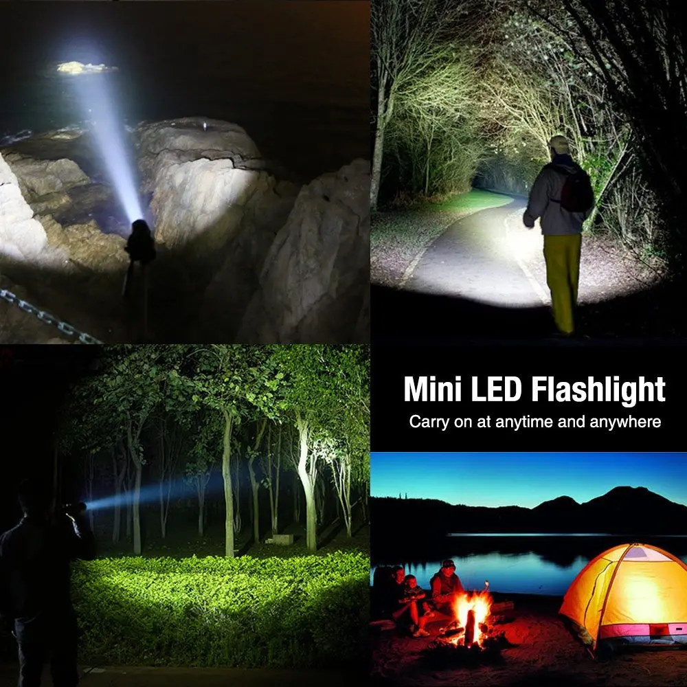 Супер Мини размер, яркий, ослепляющий эффект.Противоскользящий дизайн и водонепроницаемый дизайн.Регулируемый диапазон фокусировки для различного использования, растягивается для регулировки фокуса.Зажим для удобной переноски.Рабочее напряжение широкое и может использовать батареи в самой большой степени.Подходит для: кемпинга, пеших прогулок, велоспорта, альпинизма, охоты, рыбалки, авто чрезвычайных ситуаций, ремонта дома, семьи и активного отдыха и т. д.
