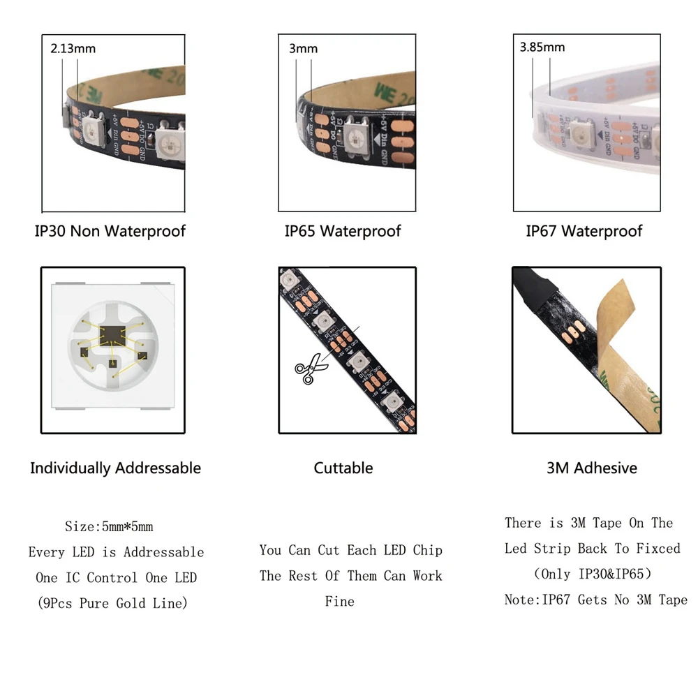 Тип IC: улучшенная версия WS2812 IC (Встроенный светодиодный индикатор 5050SMD RGB)
