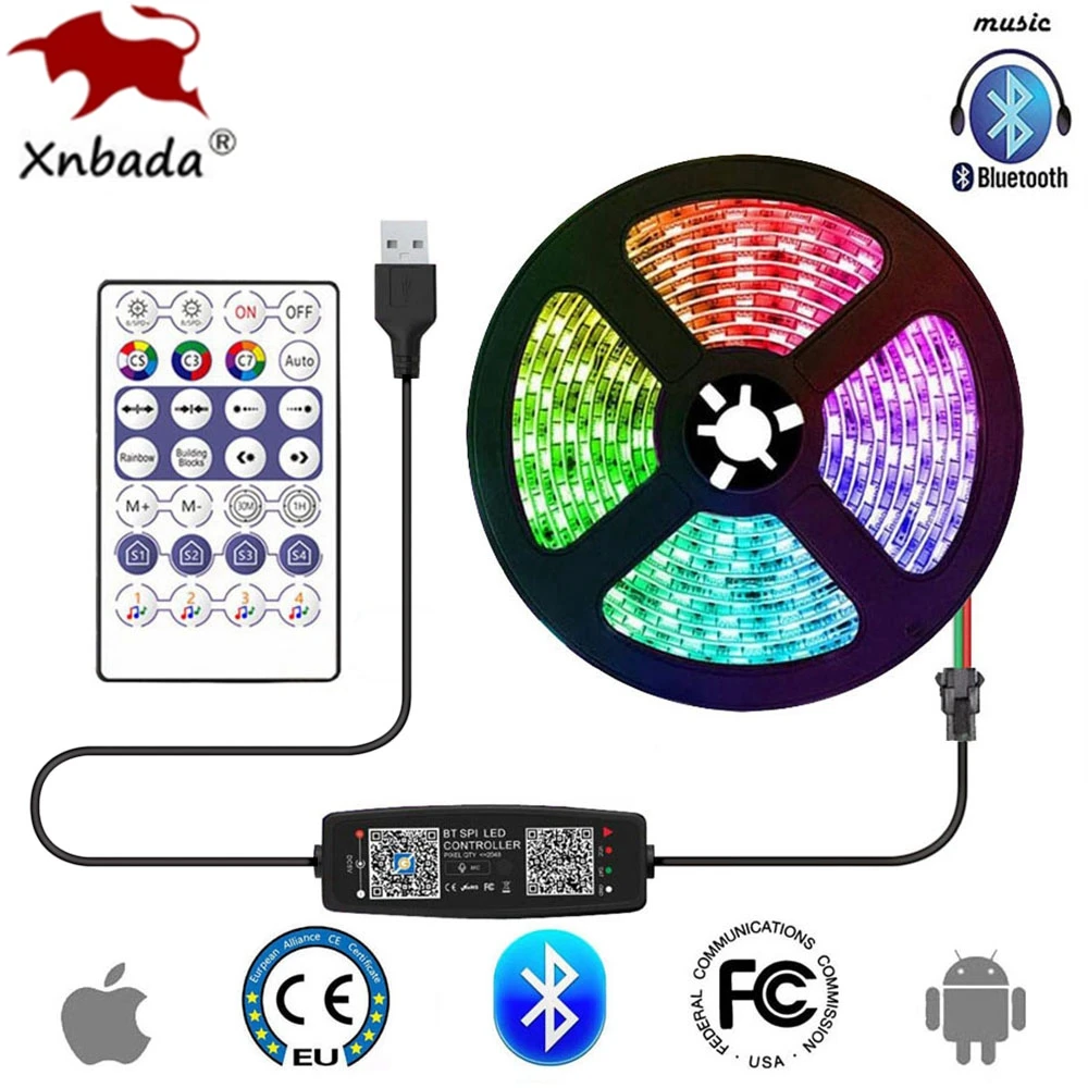 Умная RGB Светодиодная лента WS2812B WS2812 3060144 пикс.м, индивидуальная стандартная USB Bluetooth музыкальный контроллер, 5 в постоянного тока