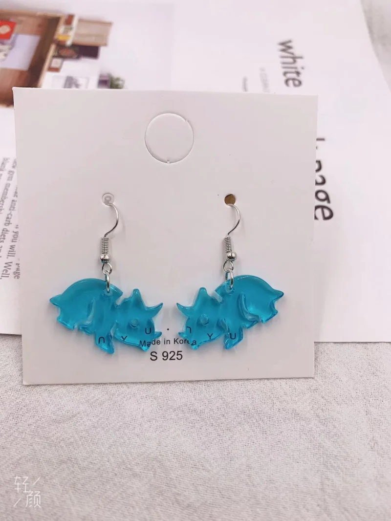 S925 Серебряные иглы Новые Смешные красочные животные акриловые милые синие динозавры Висячие серьги для девочек женщин детей ювелирные изделия подарок