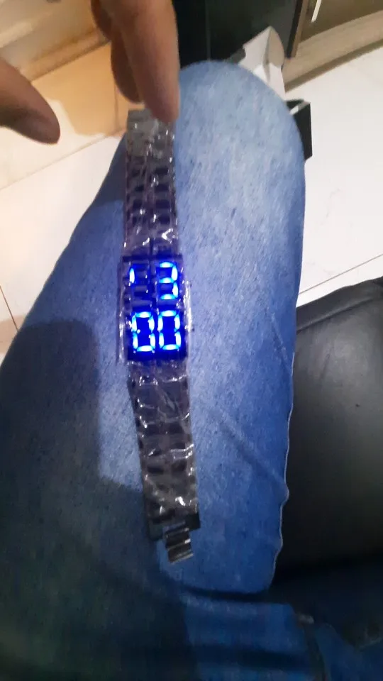 Настройки: Время, дата, секунды (часы выглядят как обычный металлический браслет в обычном режиме, время будет отображаться так же, как у лавы во время освещения светодиодный)