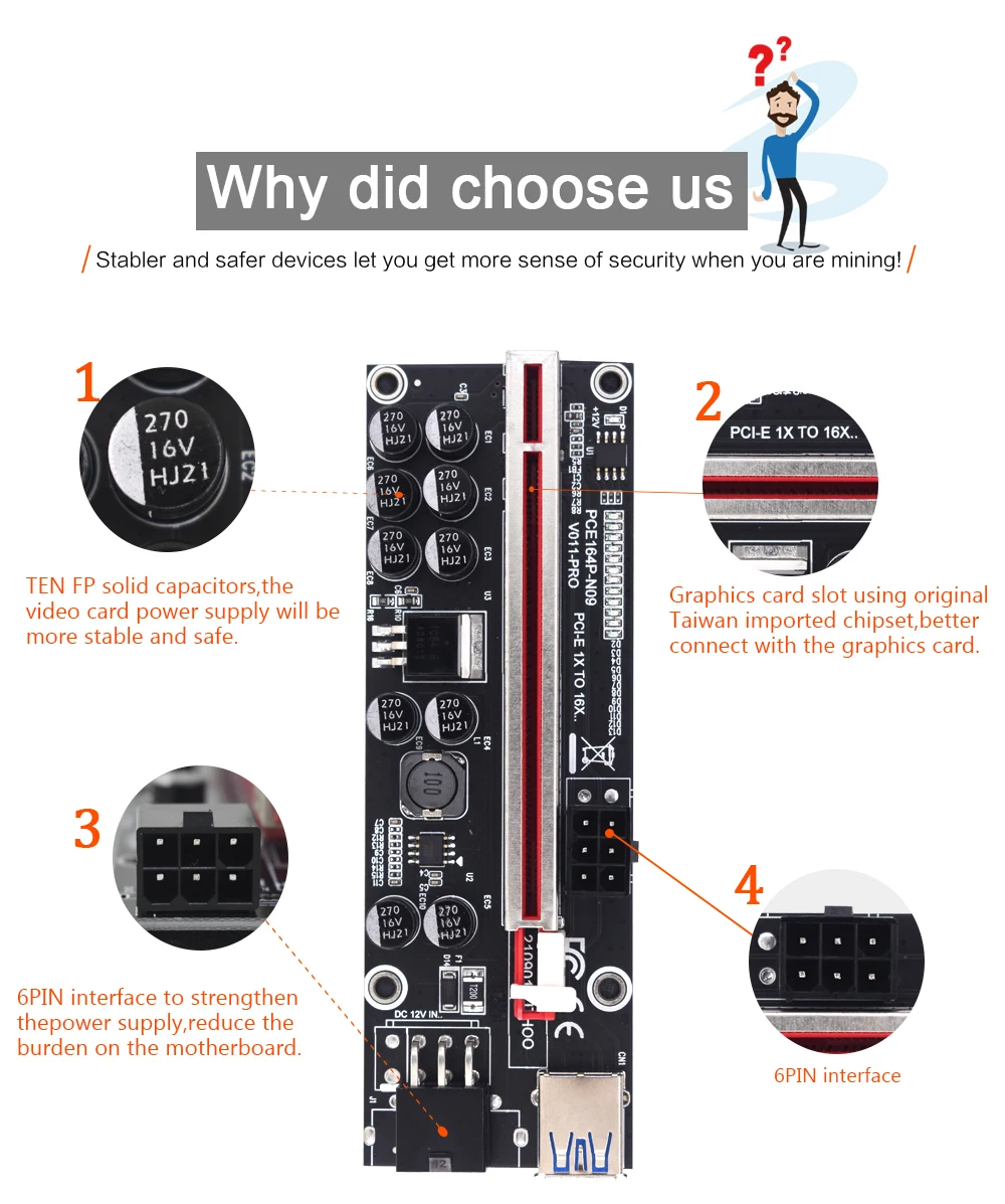 PCIE Riser VER011 pro Улучшенная супер версия для майнинга PCIE X16...
