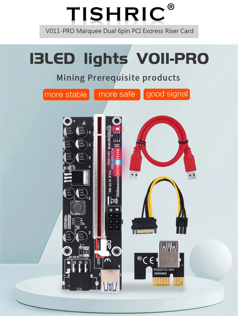 50 шт. TISHRIC PCIE Riser V011 Pro PCI-E PCI E экспресс-карта GPU 1...