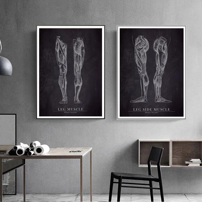Черно-белая человеческая анатомия, Ранняя медицинская клиника, Настенная картина, скелет, органная Мышечная система, плакаты, печать