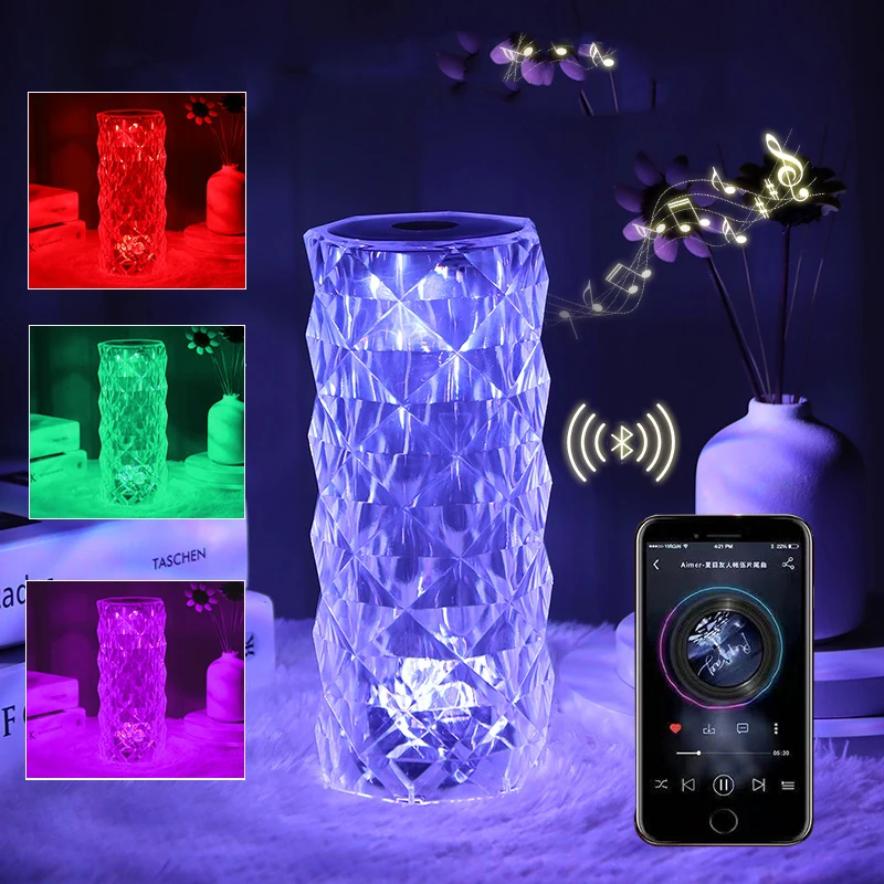 Хрустальная настольная лампа, светодиодные USB розы, настольные лампы, сенсорный выключатель APP Bluetooth для спальни, прикроватный акриловый ночник, Декор