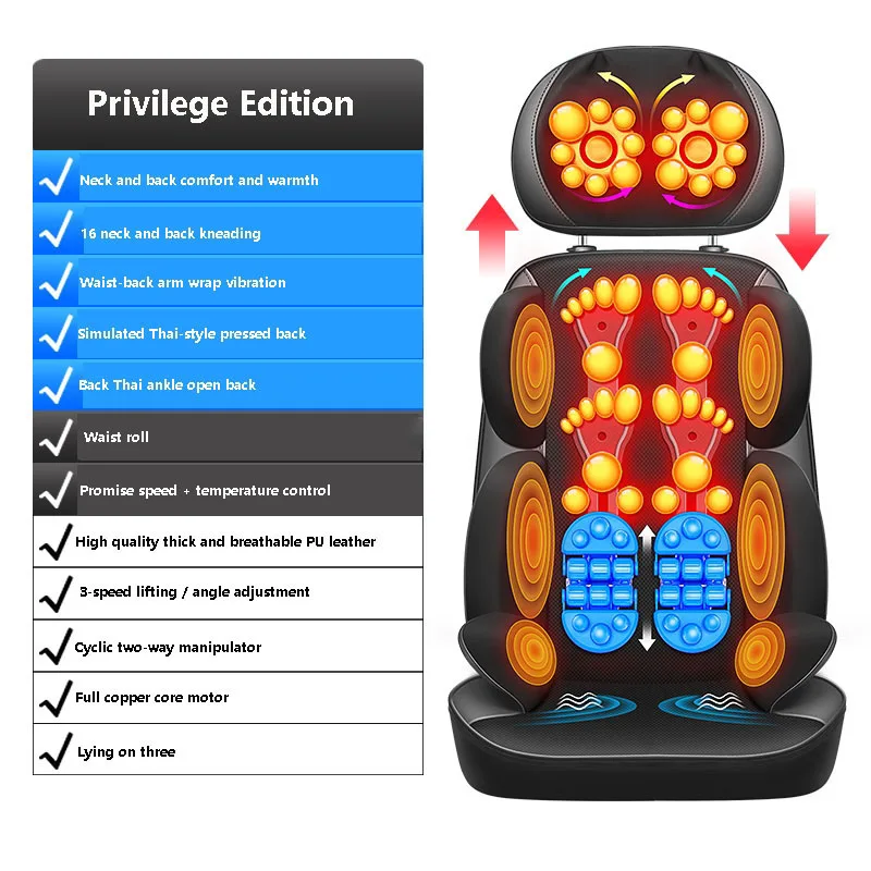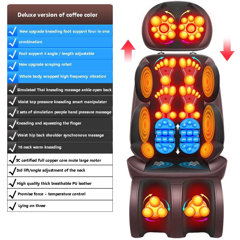 Электрический массажный стул для всего тела Shiatsu, домашний автоматический многофункциональный массаж тела, разминающая Подушка для спины, для пожилых людей, Шейная шея, плечо, бедра, нога 220 В