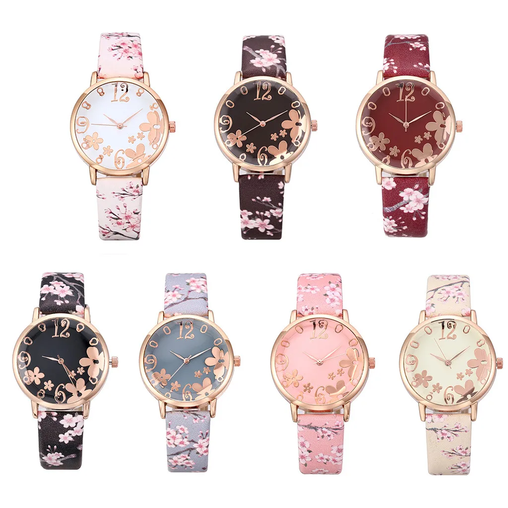 Часы для женщин с цветными цветами, маленькие модные женские кварцевые часы с ремешком с свежим принтом, изысканные часы, часы