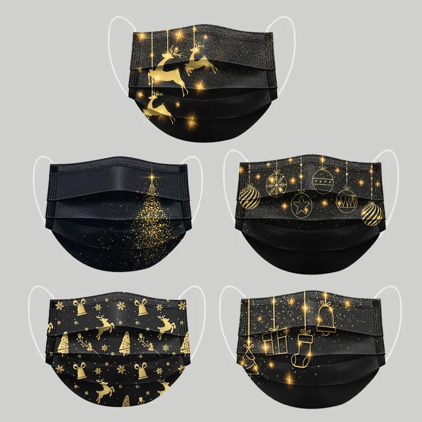 Новинка 2022 Золотая Рождественская маска для взрослых 50 шт. черна...