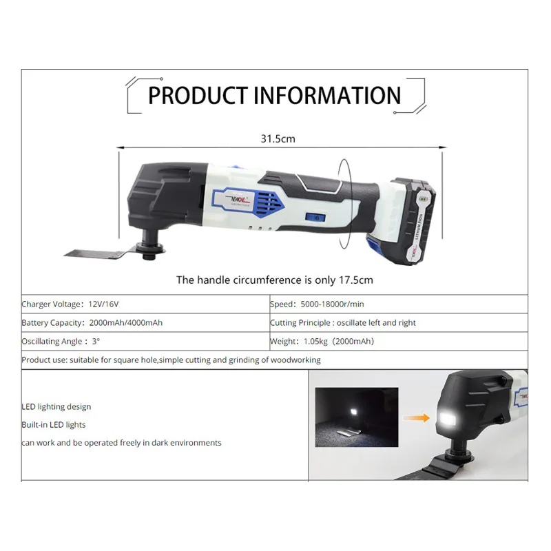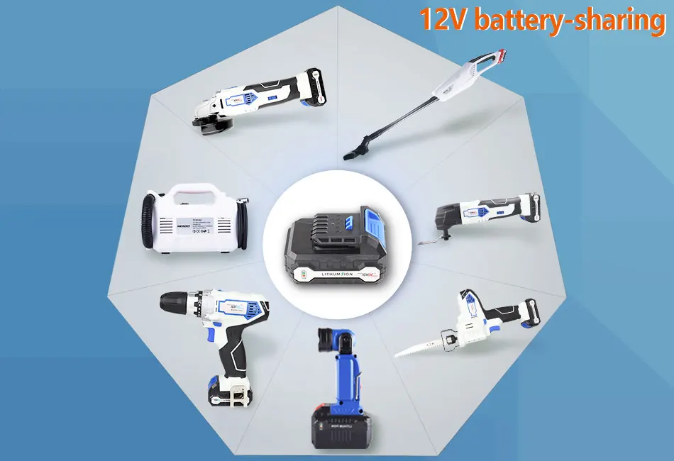 NEWONE 12 В литий-ионный беспроводной Электроинструмент Осциллирующий Инструментугловая шлифовальная машинадрельсабельная пила светодиодный воздушный насоспылесос