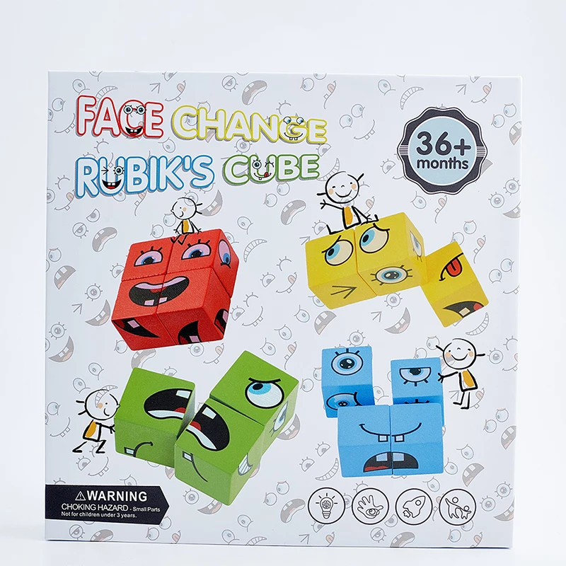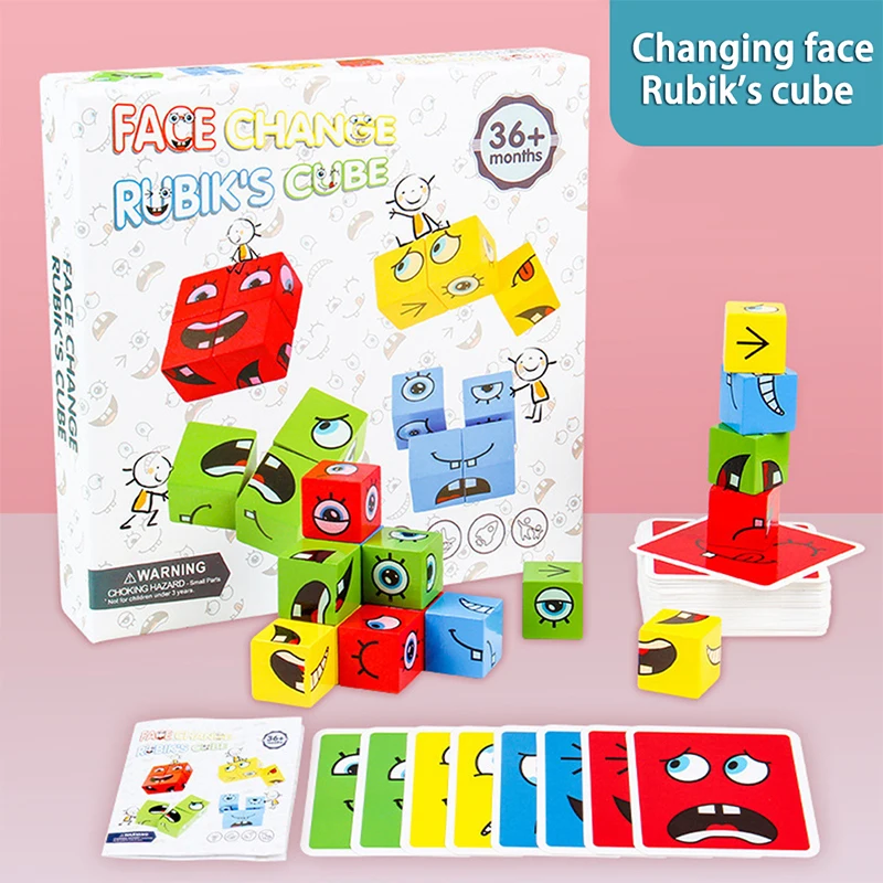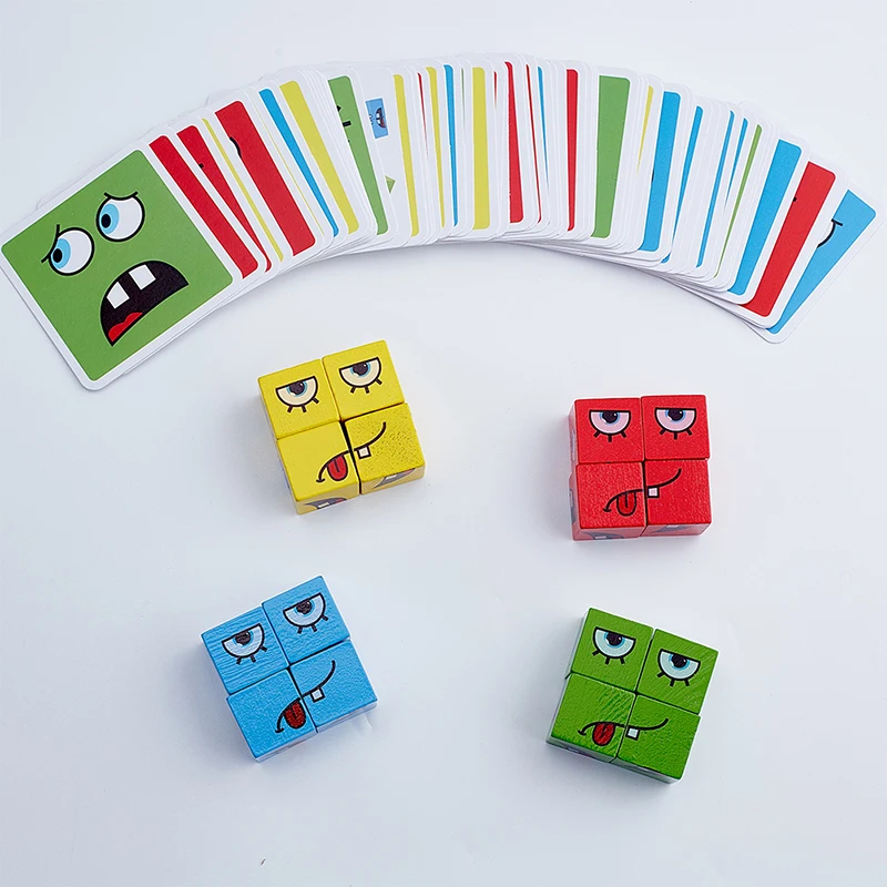 Пазлы Монтессори с выражениями, строительный блок, обучение мышлению лицом, деревянные детские Игрушки для раннего развития, Мультяшные игрушки, 2021