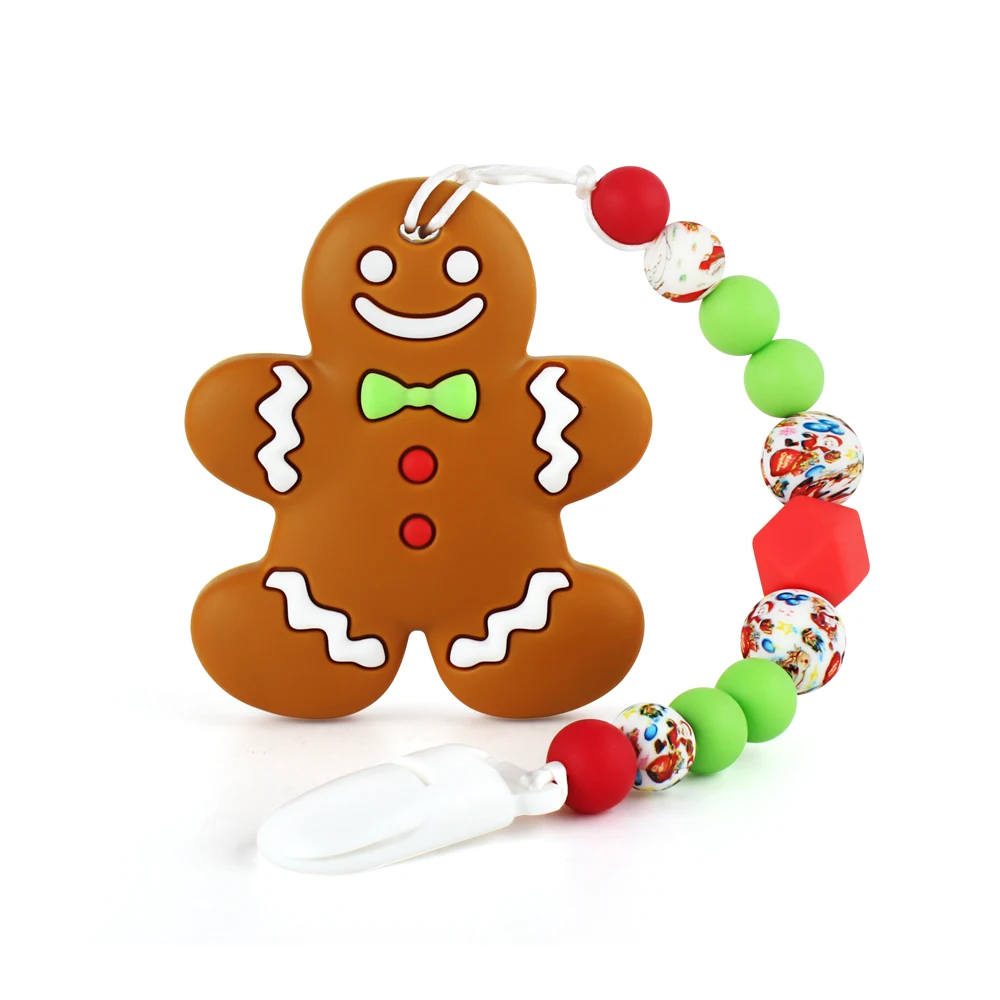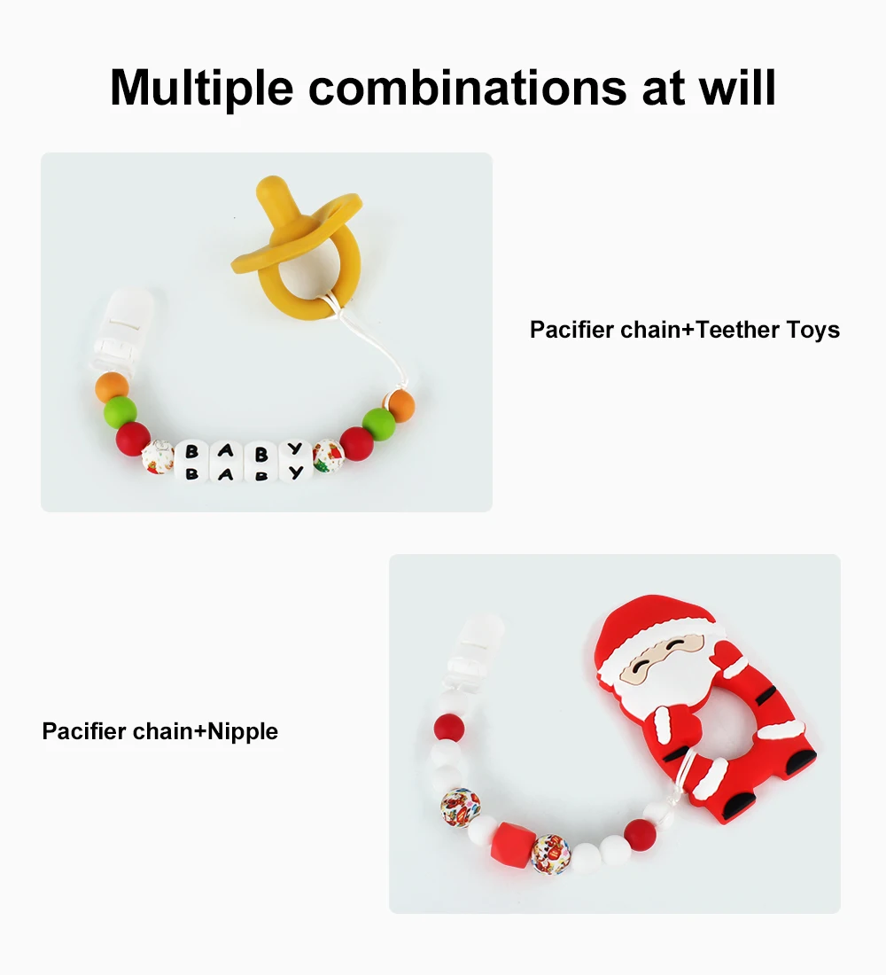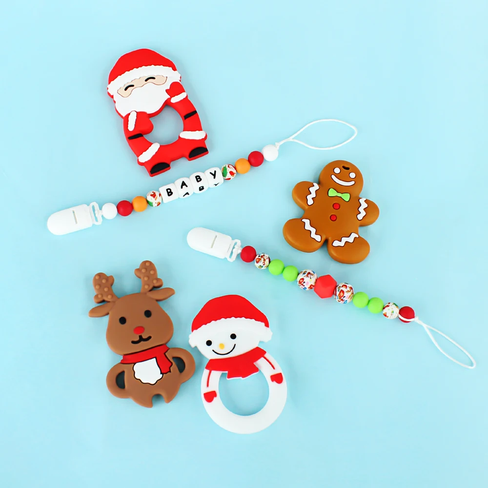 Рождественские силиконовые зажимы для пустышки, цепочки, силиконовые бусины, пищевое качество, сделай сам, Детские Прорезыватели, ожерелье, аксессуары, Детские Прорезыватели, игрушки