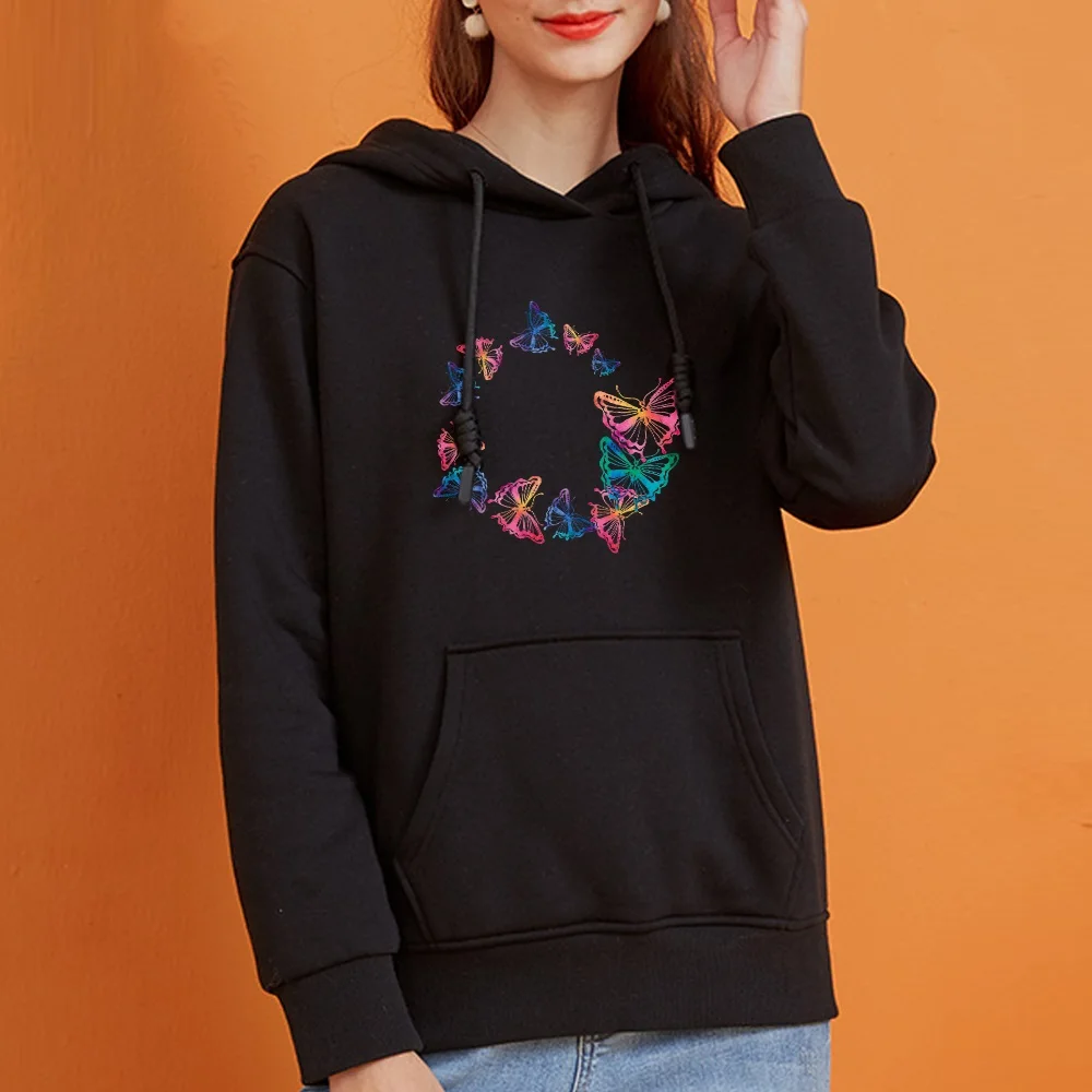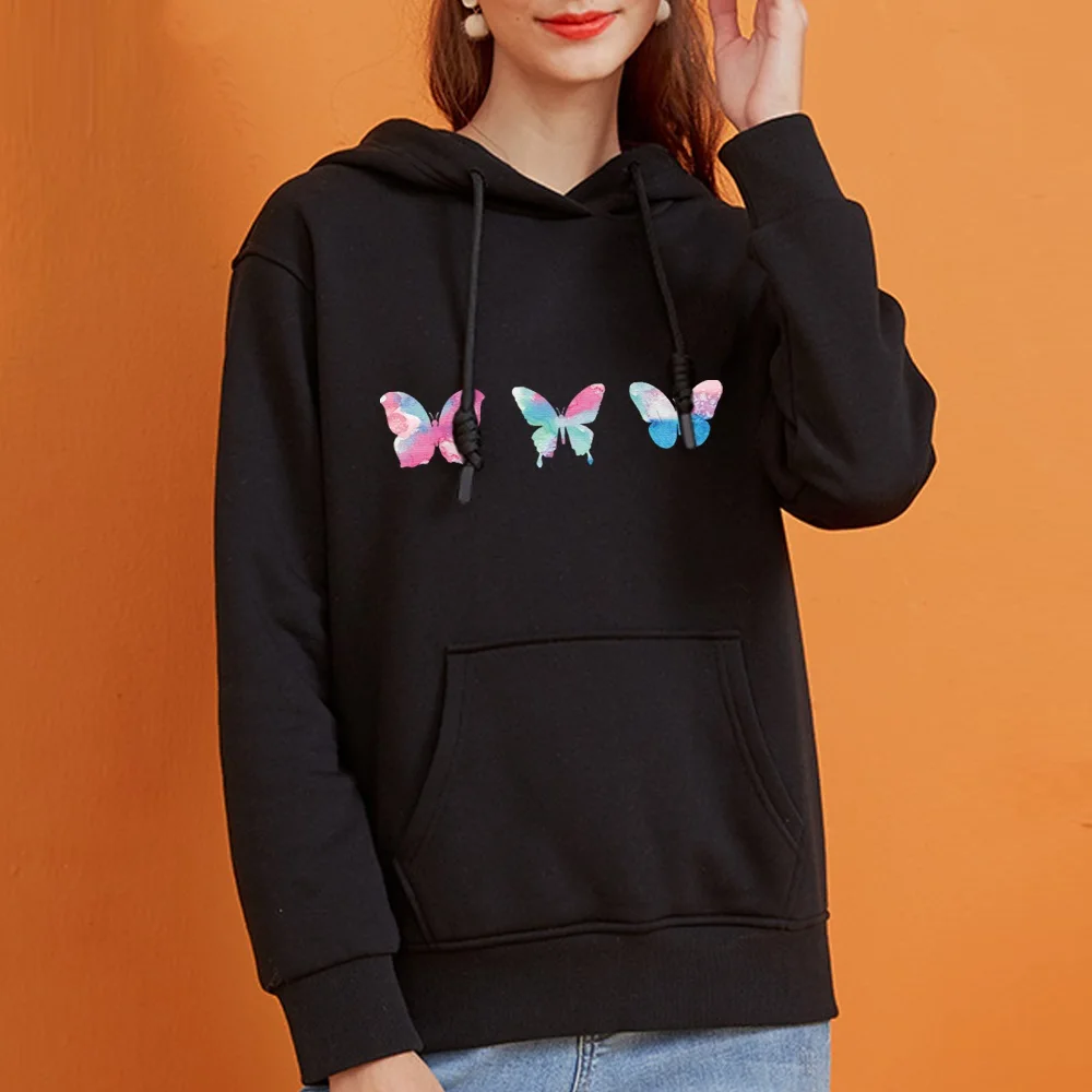 Хлопковая толстовка с капюшоном, новинка 2021, мягкий Женский свитшот на осеньзиму, цветной узор в виде бабочки, пуловер в стиле Харадзюку, свитшот с капюшоном