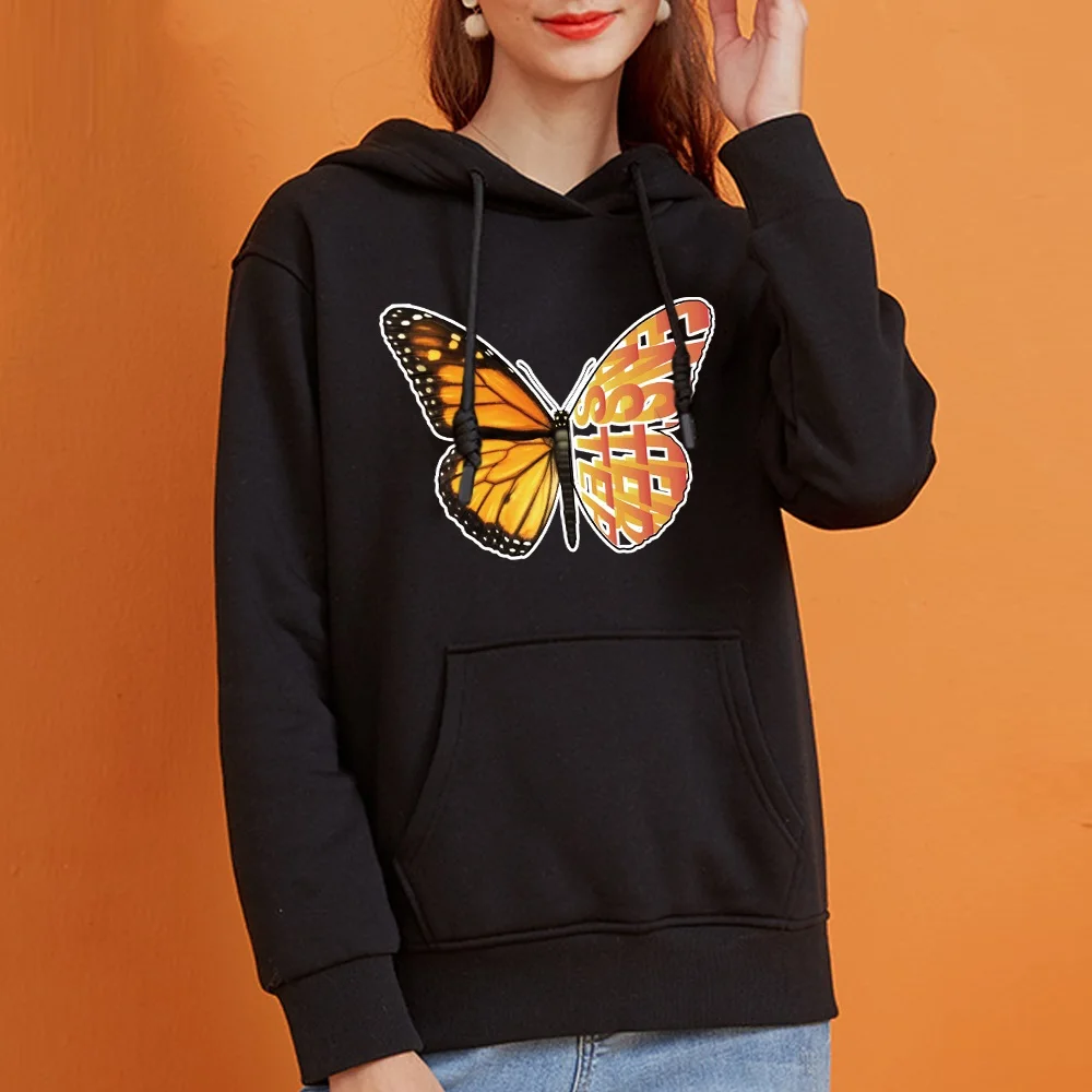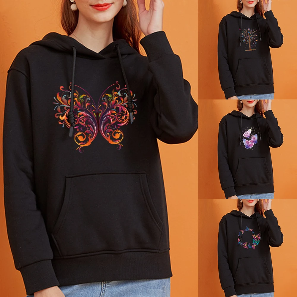 Осенняя Повседневная Толстовка с принтом бабочек, теплая толстовка ...