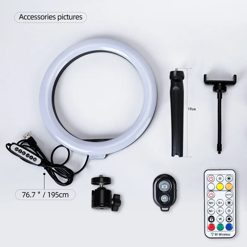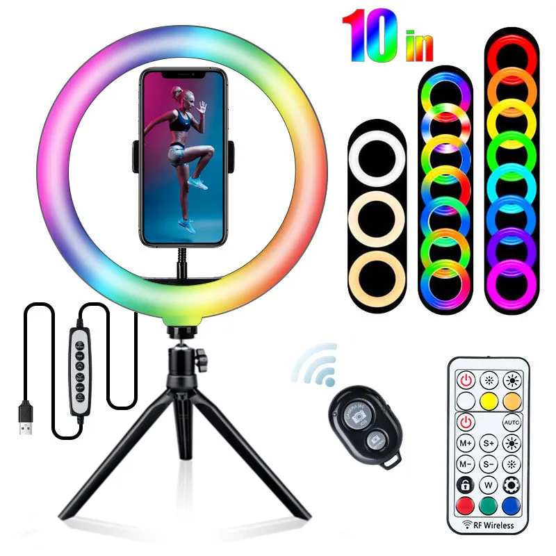 Светодиодная лампа Rgb для селфи, профессиональный кольцевой светильник для фотосъемки с триподом, со штативом для телефона
